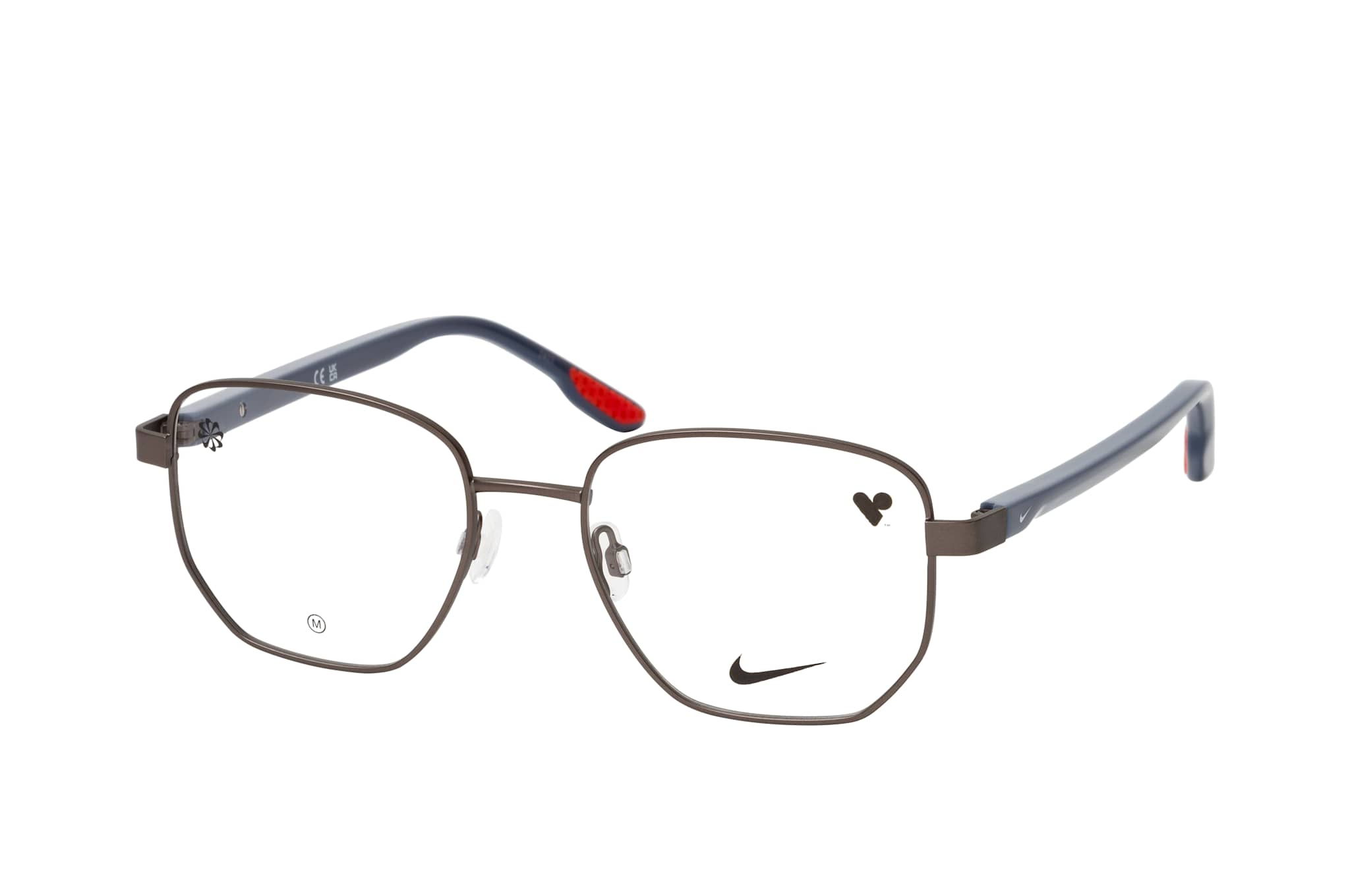 Nike NIKE 8400 074, Quadratische Brille Herren. Farbe: Grau, Größe: Medium, Rahmentyp: FULLFRAME, Brillenbreite: 133mm, Glashöhe: 43mm, Material: Metall. Stegbreite: 18mm. Glasfarbe: . Glasmaterial: Metall/Metall.Hersteller: Marchon Germany GmbH. Style:
