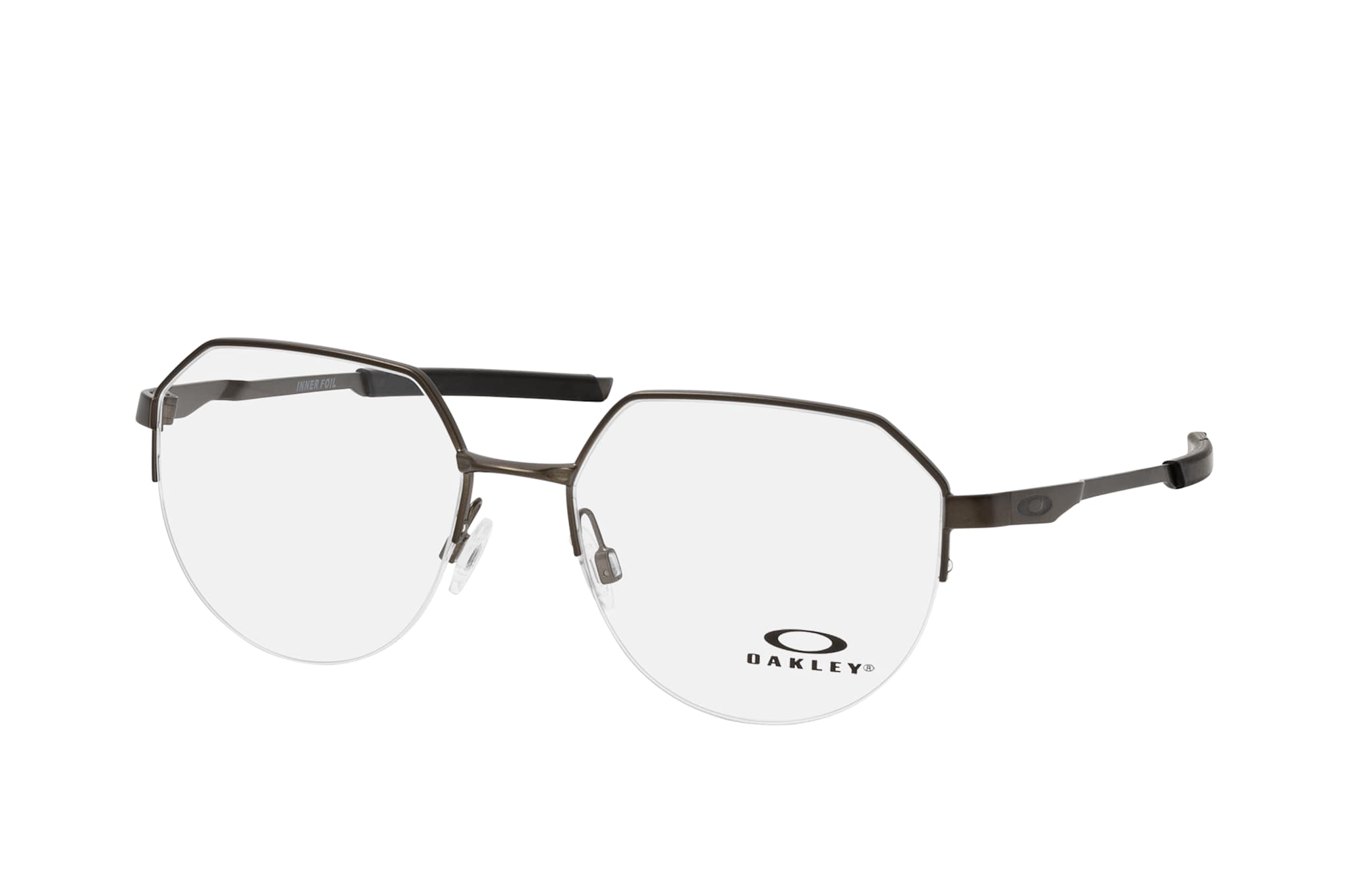 Oakley Inner Foil OX 3247 02, Runde Brille Herren. Farbe: Grau, Größe: Medium, Rahmentyp: HALFFRAME, Brillenbreite: 131mm, Glashöhe: 46mm, Material: Metall. Stegbreite: 17mm. Glasfarbe: . Glasmaterial: Metall/Metall.Hersteller: Luxottica Group S.p.A. Style: MODERN