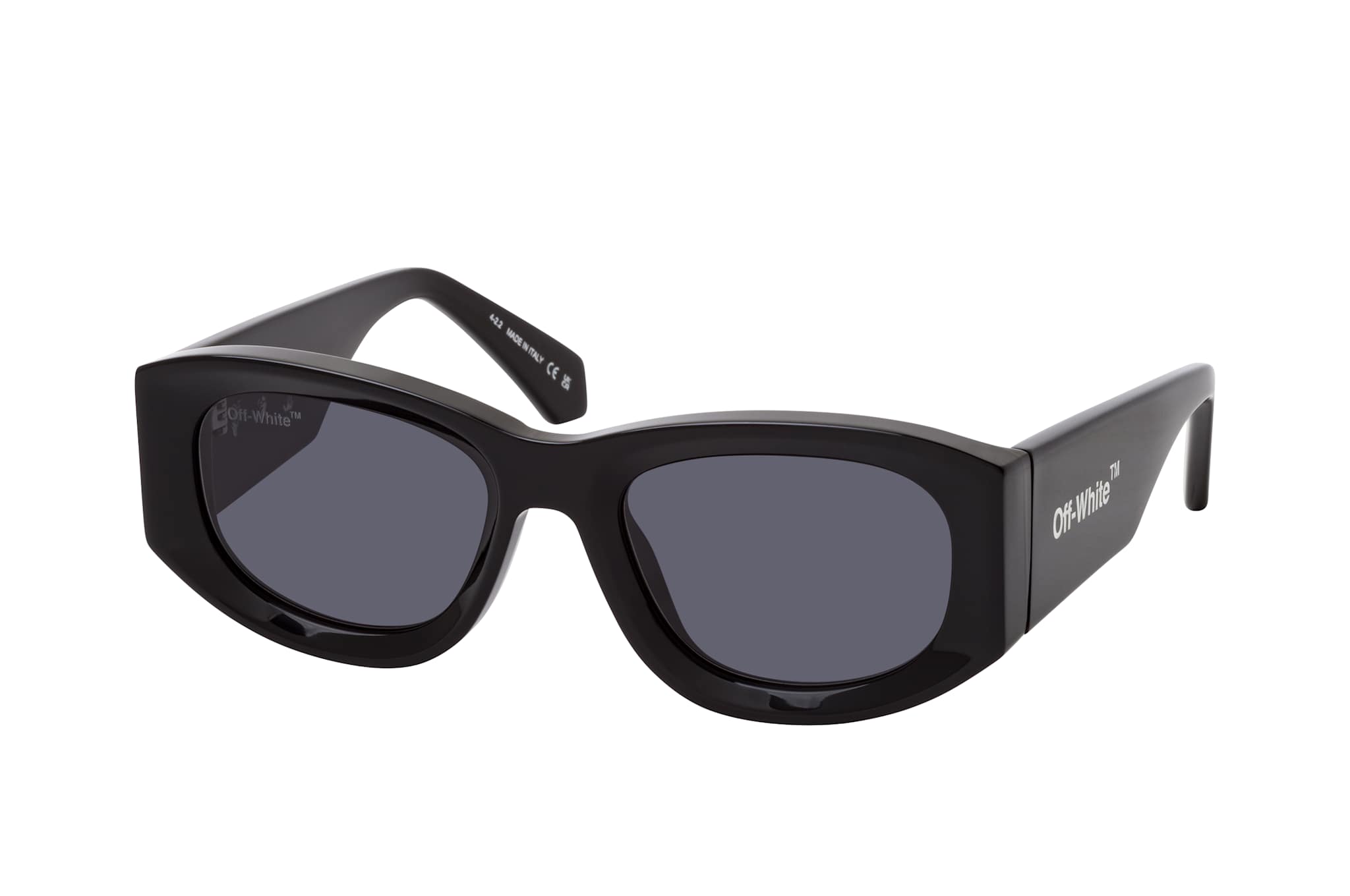 Off-White JOAN OERI041 1007, Cat Eye Sonnenbrille Unisex. Farbe: Schwarz, Größe: Medium, Rahmentyp: FULLFRAME, Brillenbreite: 143mm, Glashöhe: 39mm, Material: Kunststoff. Stegbreite: 20mm. Glasfarbe: Grau. Mit UV400-Filter. Hersteller: New Guards. Style: