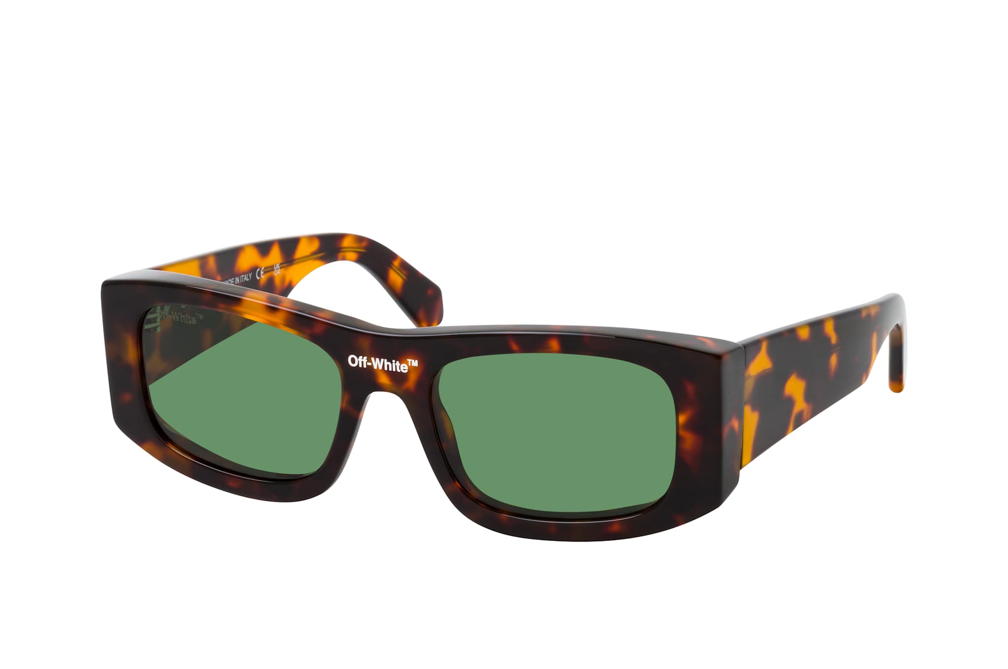 Off-White LUCIO OERI039 6055, Rechteckige Sonnenbrille Unisex. Farbe: Havana, Größe: Medium, Rahmentyp: FULLFRAME, Brillenbreite: 145mm, Glashöhe: 38mm, Material: Kunststoff. Stegbreite: 19mm. Glasfarbe: Grün. Mit UV400-Filter. Hersteller: New Guards. Style:
