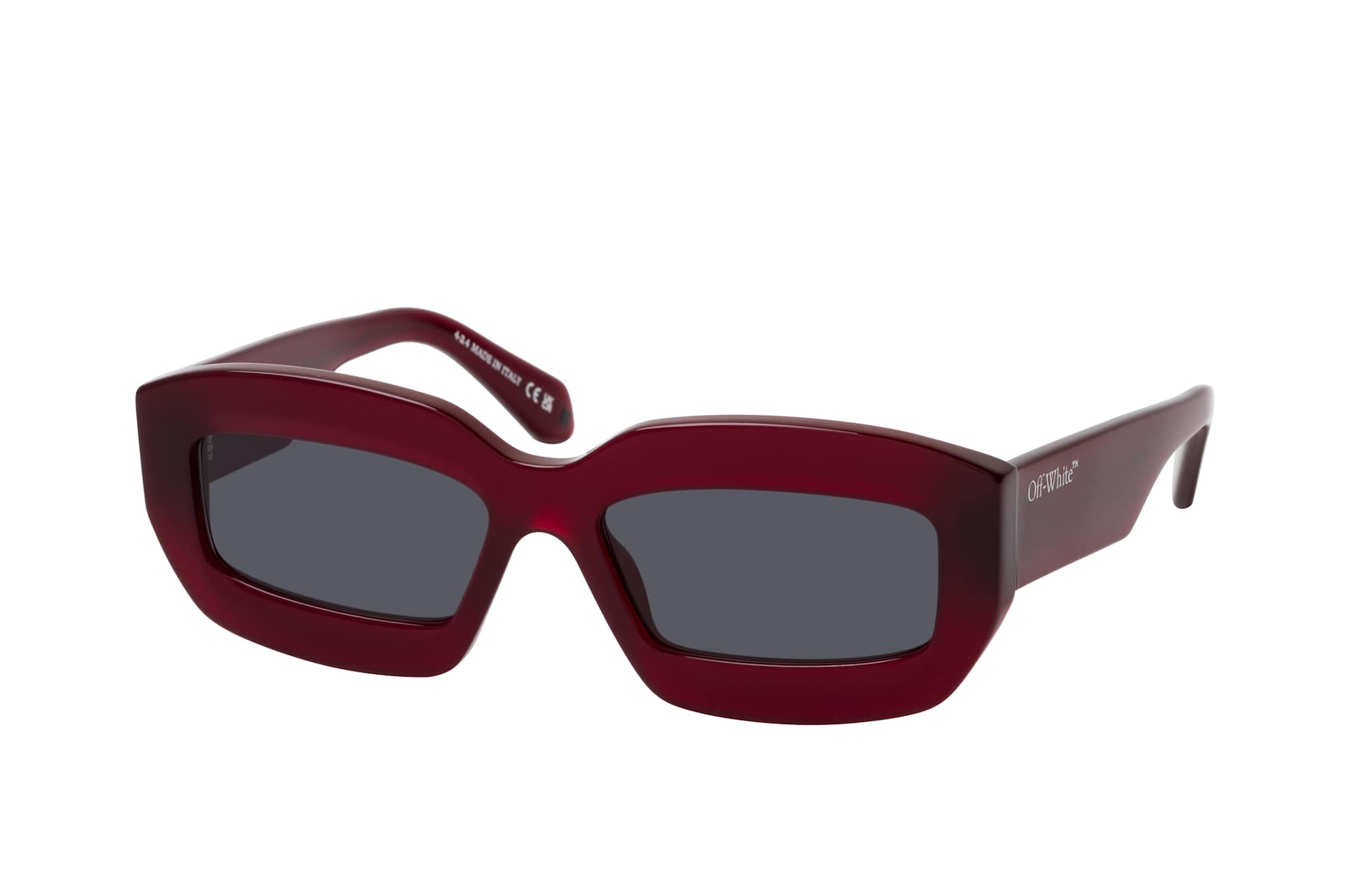 Off-White OERI138 2807, Rechteckige Sonnenbrille Unisex. Farbe: Rot, Größe: Medium, Rahmentyp: FULLFRAME, Brillenbreite: 140mm, Glashöhe: 29mm, Material: Kunststoff. Stegbreite: 16mm. Glasfarbe: Grau. Mit UV400-Filter. Hersteller: New Guards. Style: