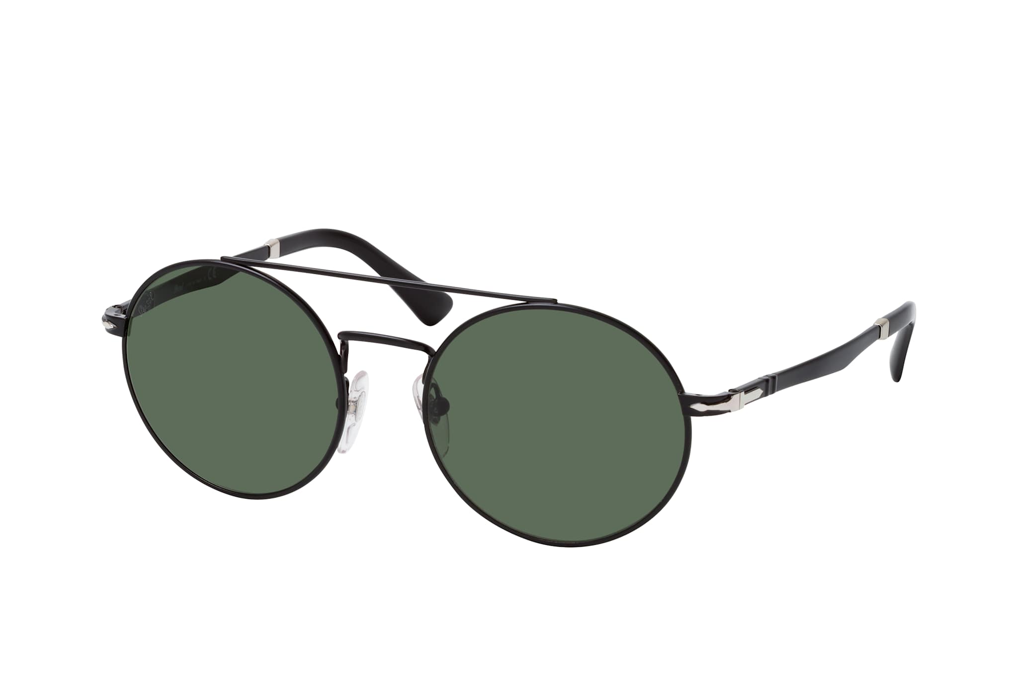 Persol PO 2496S 113831, Runde Sonnenbrille Unisex. Farbe: Schwarz, Größe: Medium, Rahmentyp: FULLFRAME, Brillenbreite: 134mm, Glashöhe: 48mm, Material: Metall. Stegbreite: 18mm. Glasfarbe: Grün. Mit UV400-Filter. Hersteller: Luxottica Group S.p.A. Style: MODERN