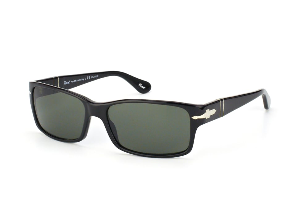 Persol PO 2803S 95/58, Rechteckige Sonnenbrille Herren. Farbe: Schwarz, Größe: Small, Rahmentyp: FULLFRAME, Brillenbreite: 140mm, Glashöhe: 35mm, Material: Kunststoff. Stegbreite: 16mm. Glasfarbe: Polglas Grün. Mit UV400-Filter. Hersteller: Luxottica Fashion Brillen Vertriebs GmbH. Style: