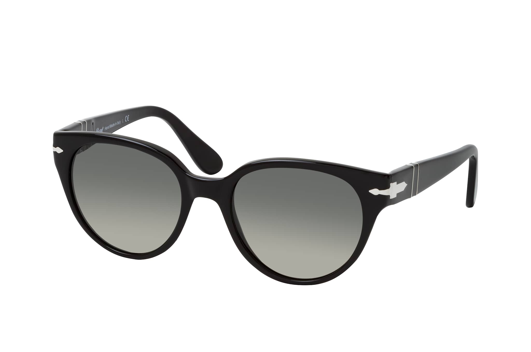 Persol PO 3287S 95/71, Runde Sonnenbrille Damen. Farbe: Schwarz, Größe: Medium, Rahmentyp: FULLFRAME, Brillenbreite: 137mm, Glashöhe: 47mm, Material: Kunststoff. Stegbreite: 19mm. Glasfarbe: Grau. Mit UV400-Filter. Hersteller: Luxottica Group S.p.A. Style: MODERN