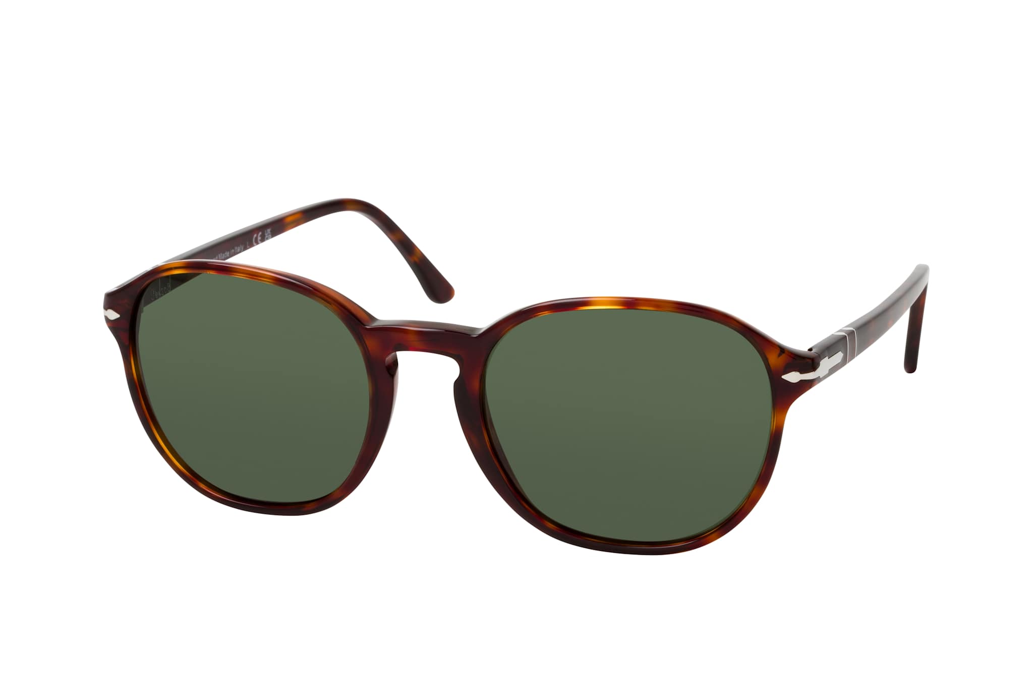 Persol PO 3343S 24/31, Quadratische Sonnenbrille Unisex. Farbe: Havana, Größe: Medium, Rahmentyp: FULLFRAME, Brillenbreite: 144mm, Glashöhe: 48mm, Material: Kunststoff. Stegbreite: 21mm. Glasfarbe: Grün. Mit UV400-Filter. Hersteller: Luxottica Group S.p.A. Style: