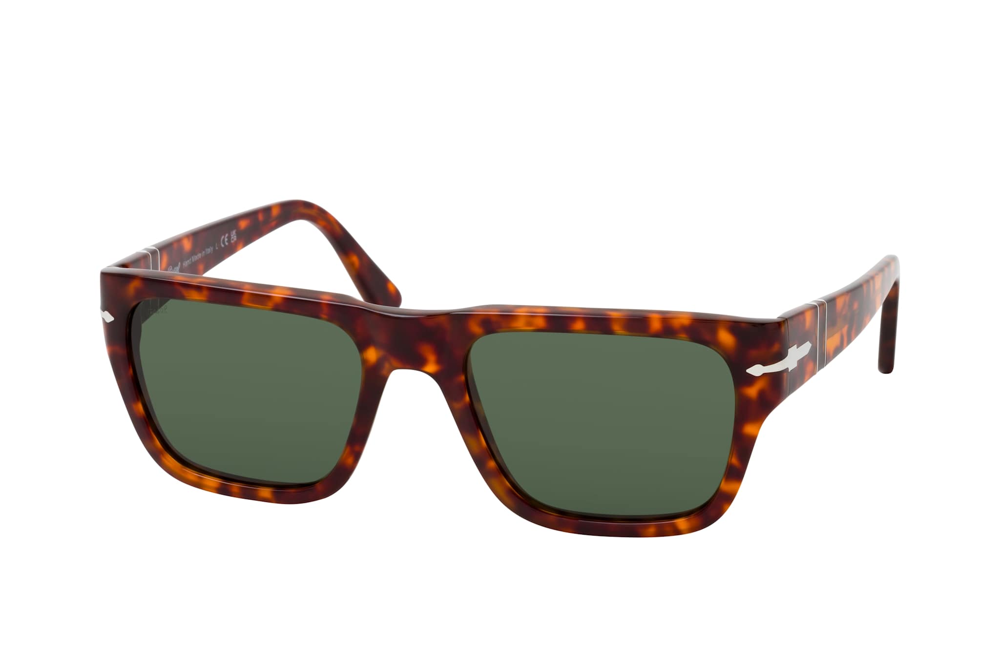 Persol PO 3348S 24/31, Quadratische Sonnenbrille Unisex. Farbe: Havana, Größe: Medium, Rahmentyp: FULLFRAME, Brillenbreite: 144mm, Glashöhe: 42mm, Material: Kunststoff. Stegbreite: 20mm. Glasfarbe: Grün. Mit UV400-Filter. Hersteller: Luxottica Group S.p.A. Style: