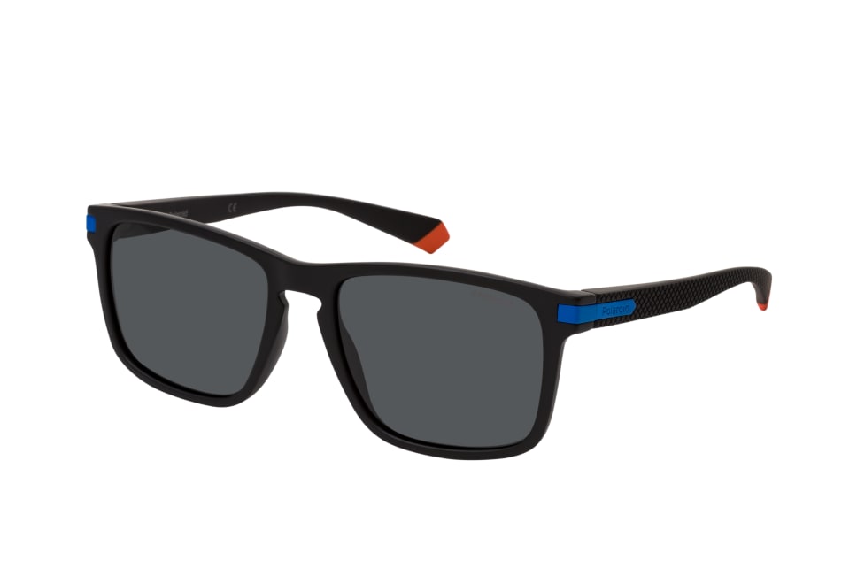 Polaroid PLD 2088/S 0VK, Quadratische Sonnenbrille Unisex. Farbe: Blau, Größe: Medium, Rahmentyp: FULLFRAME, Brillenbreite: 144mm, Glashöhe: 43mm, Material: Kunststoff. Stegbreite: 18mm. Glasfarbe: Grau. Mit UV400-Filter. Hersteller: Safilo GmbH. Style: CLASSIC