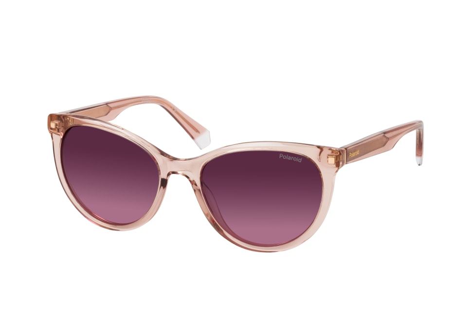 Polaroid PLD 4111/S/X 35J, Cat Eye Sonnenbrille Damen. Farbe: Rosa, Größe: Medium, Rahmentyp: FULLFRAME, Brillenbreite: 138mm, Glashöhe: 43mm, Material: Kunststoff. Stegbreite: 18mm. Glasfarbe: Lila. Mit UV400-Filter. Hersteller: Safilo GmbH. Style:
