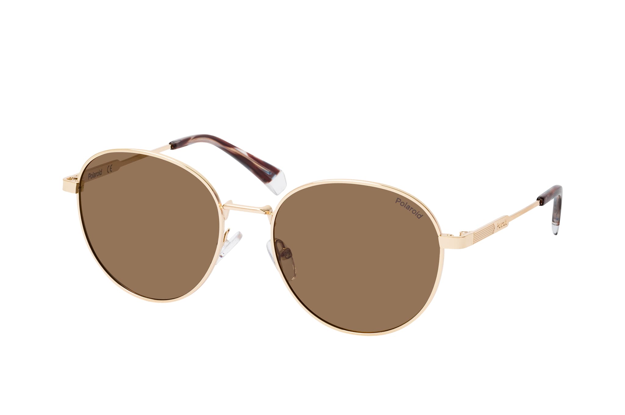 Polaroid PLD 4135/S/X 01QSP, Runde Sonnenbrille Unisex. Farbe: Goldfarben, Größe: Medium, Rahmentyp: FULLFRAME, Brillenbreite: 138mm, Glashöhe: 49mm, Material: Metall. Stegbreite: 17mm. Glasfarbe: Braun. Mit UV400-Filter. Hersteller: Safilo GmbH. Style: CLASSIC