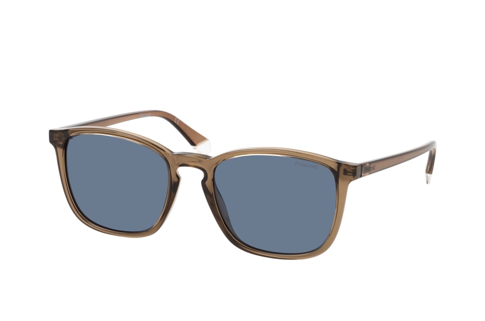 Polaroid PLD 4139/S 09Q, Quadratische Sonnenbrille Herren. Farbe: Braun, Größe: Medium, Rahmentyp: FULLFRAME, Brillenbreite: 142mm, Glashöhe: 45mm, Material: Kunststoff. Stegbreite: 19mm. Glasfarbe: Blau. Mit UV400-Filter. Hersteller: Safilo GmbH. Style: