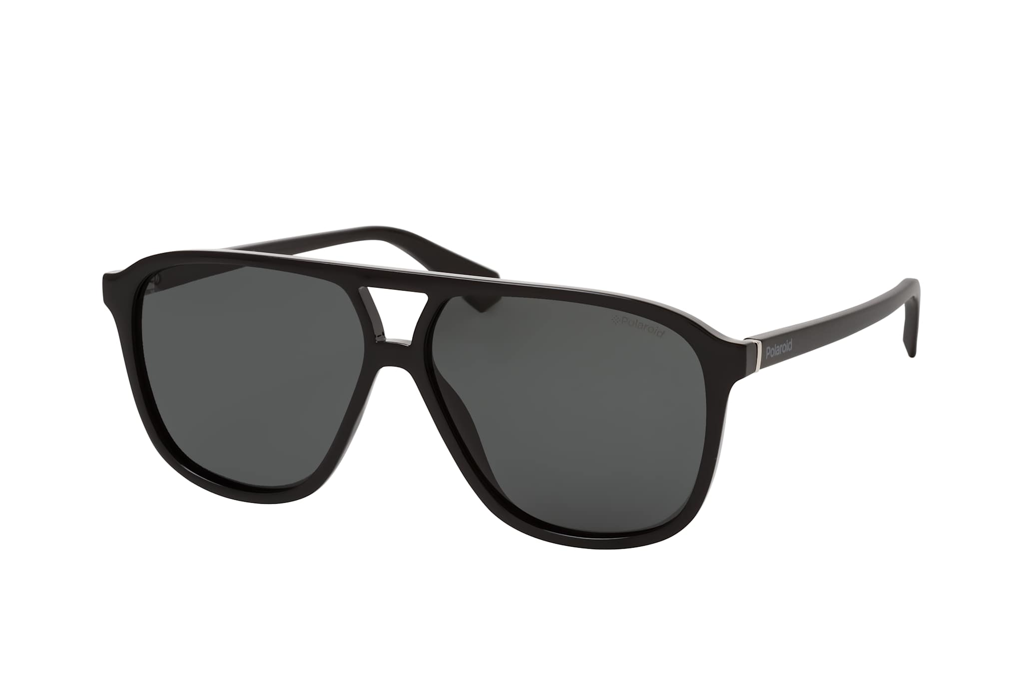 Polaroid PLD 6097/S 807, Aviator Sonnenbrille Unisex. Farbe: Schwarz, Größe: Medium, Rahmentyp: FULLFRAME, Brillenbreite: 141mm, Glashöhe: 50mm, Material: Kunststoff. Stegbreite: 12mm. Glasfarbe: Grau. Mit UV400-Filter. Hersteller: Safilo GmbH. Style: MODERN