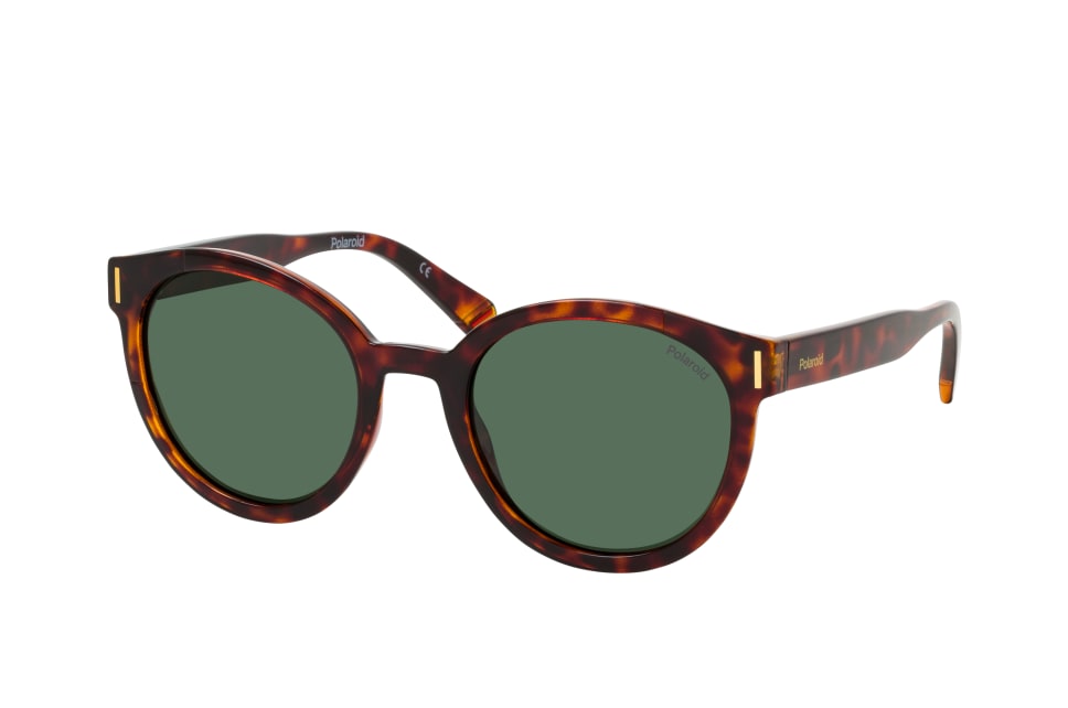 Polaroid PLD 6185/S 086, Runde Sonnenbrille Damen. Farbe: Havana, Größe: Medium, Rahmentyp: FULLFRAME, Brillenbreite: 139mm, Glashöhe: 47mm, Material: Kunststoff. Stegbreite: 21mm. Glasfarbe: Grün. Mit UV400-Filter. Hersteller: Safilo GmbH. Style: