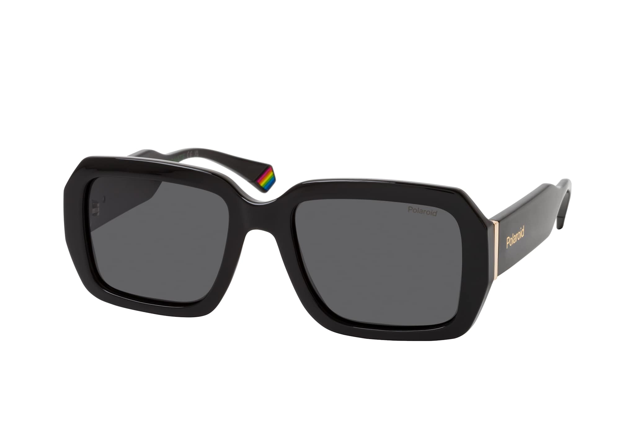 Polaroid PLD 6223/S/X 807, Quadratische Sonnenbrille Unisex. Farbe: Schwarz, Größe: Medium, Rahmentyp: FULLFRAME, Brillenbreite: 140mm, Glashöhe: 43mm, Material: Kunststoff. Stegbreite: 19mm. Glasfarbe: Grau. Mit UV400-Filter. Hersteller: Safilo GmbH. Style: