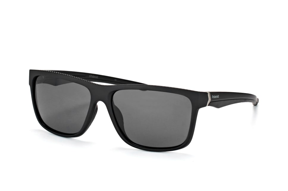 Polaroid PLD 7014/S 807 M9, Quadratische Sonnenbrille Herren. Farbe: Schwarz, Größe: Medium, Rahmentyp: FULLFRAME, Brillenbreite: 141mm, Glashöhe: 44mm, Material: Kunststoff. Stegbreite: 15mm. Glasfarbe: Polglas Grau. Mit UV400-Filter. Hersteller: Safilo GmbH. Style: SPORTIVE
