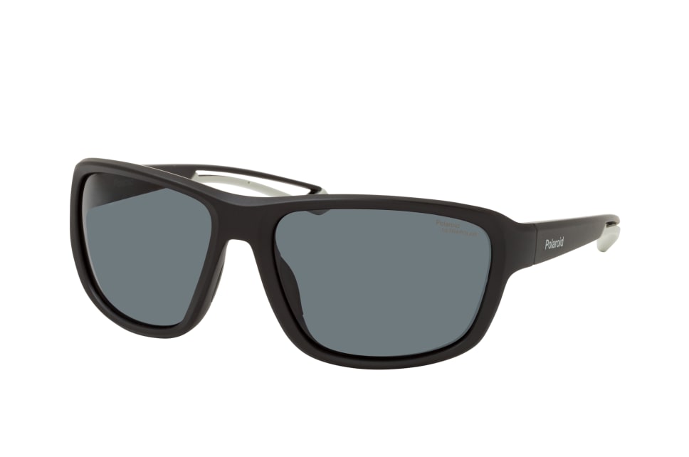 Polaroid PLD 7049/S 003, Rechteckige Sonnenbrille Unisex. Farbe: Schwarz, Größe: Medium, Rahmentyp: FULLFRAME, Brillenbreite: 155mm, Glashöhe: 44mm, Material: Kunststoff. Stegbreite: 17mm. Glasfarbe: Grau. Mit UV400-Filter. Hersteller: Safilo GmbH. Style: