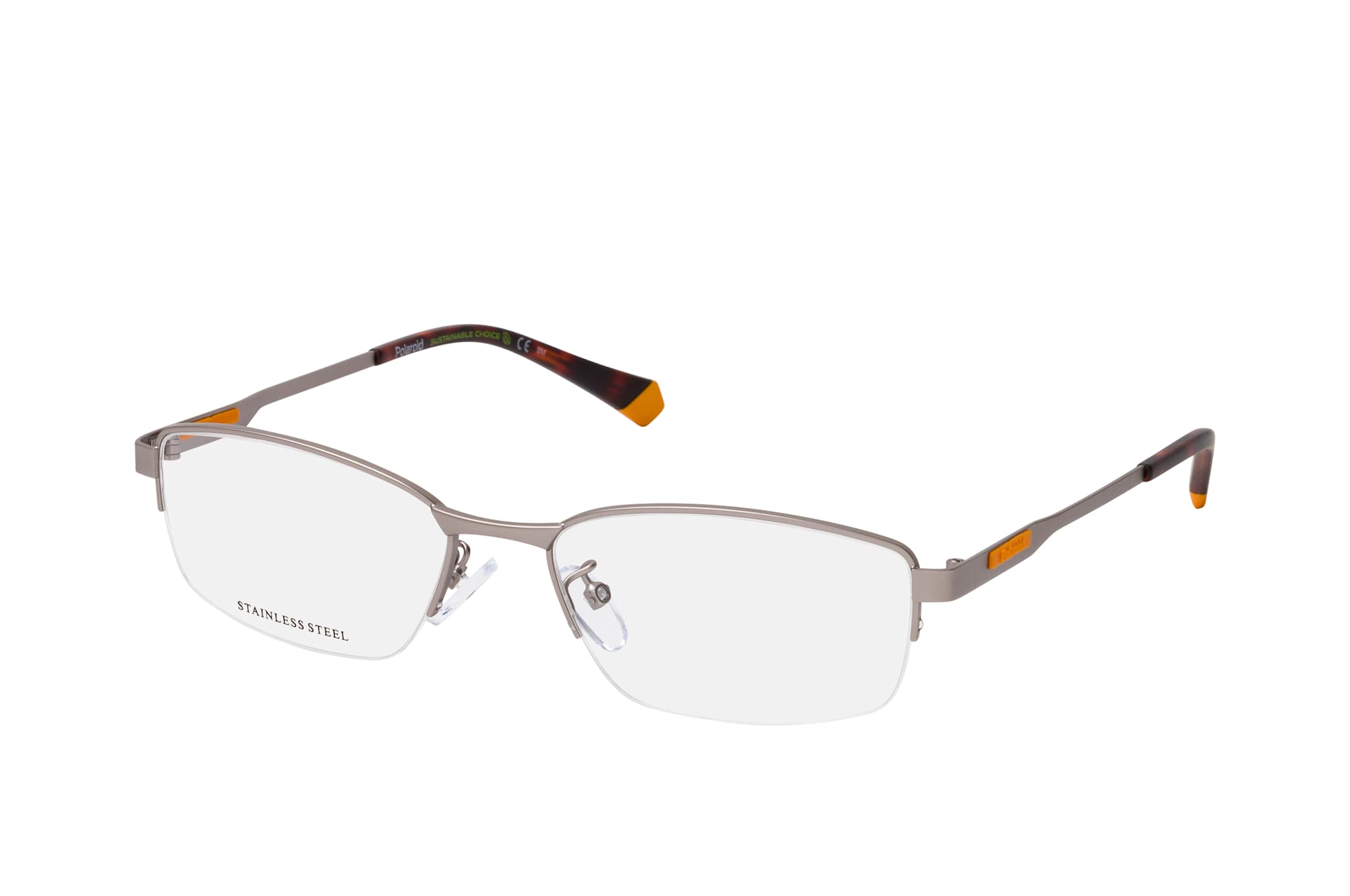 Polaroid PLD D481/G R81, Rechteckige Brille Herren. Farbe: Grau, Größe: Medium, Rahmentyp: HALFFRAME, Brillenbreite: 136mm, Glashöhe: 33mm, Material: Metall. Stegbreite: 17mm. Glasfarbe: . Glasmaterial: Metall/Metall.Hersteller: Safilo GmbH. Style: CLASSIC