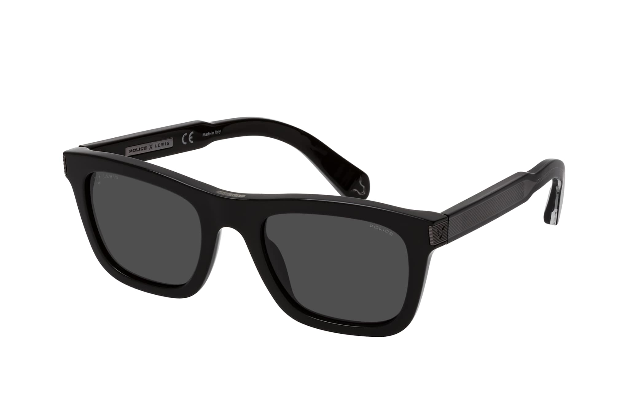 Police LEWIS 16 SPLB 32 700Y, Quadratische Sonnenbrille Herren. Farbe: Schwarz, Größe: Medium, Rahmentyp: FULLFRAME, Brillenbreite: 144mm, Glashöhe: 40mm, Material: Kunststoff. Stegbreite: 22mm. Glasfarbe: Grau. Mit UV400-Filter. Hersteller: De Rigo Vision S.p.A. Style: EXTRAVAGANT