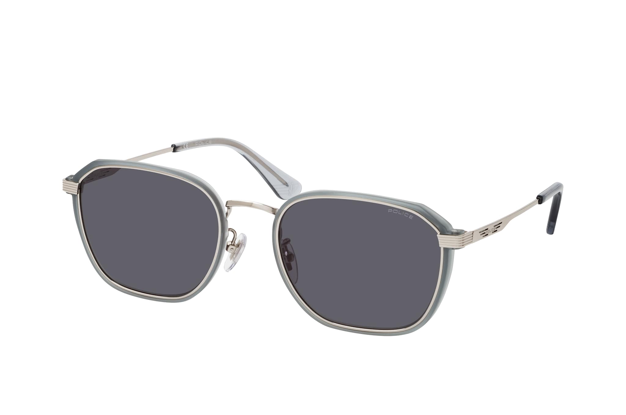Police SPLD 46 0579, Quadratische Sonnenbrille Herren. Farbe: Silber, Größe: Medium, Rahmentyp: FULLFRAME, Brillenbreite: 138mm, Glashöhe: 43mm, Material: Metall. Stegbreite: 19mm. Glasfarbe: Grau. Mit UV400-Filter. Hersteller: De Rigo Vision S.p.A. Style: MODERN