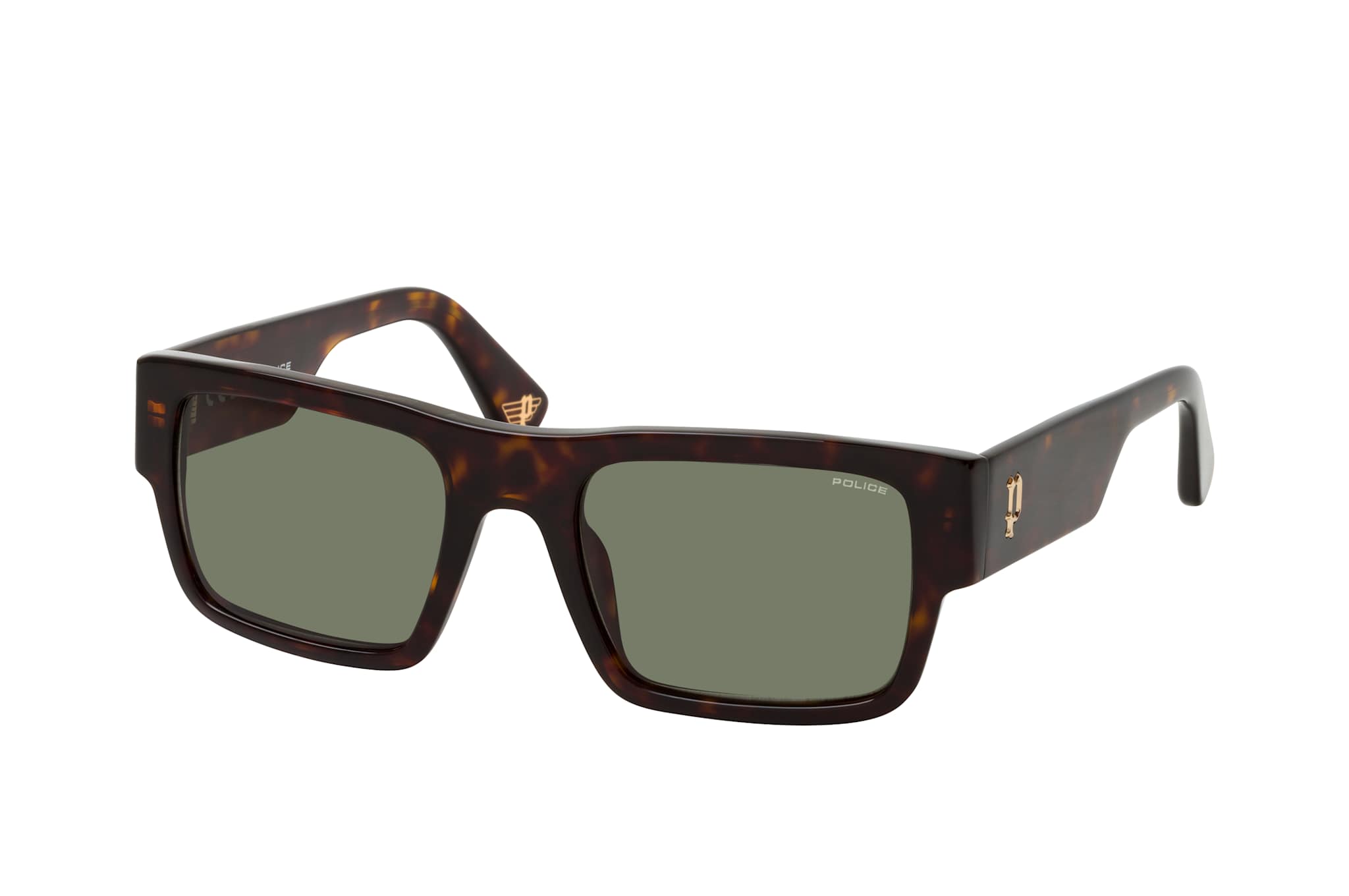 Police SPLL 12 0722, Quadratische Sonnenbrille Herren. Farbe: Havana, Größe: Medium, Rahmentyp: FULLFRAME, Brillenbreite: 144mm, Glashöhe: 40mm, Material: Kunststoff. Stegbreite: 21mm. Glasfarbe: Grün. Mit UV400-Filter. Hersteller: De Rigo Vision S.p.A. Style: