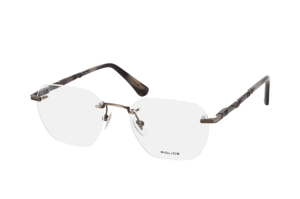 Police VPLF 83 0K20, Quadratische Brille Herren. Farbe: Grau, Größe: Medium, Rahmentyp: FRAMELESS, Brillenbreite: 130mm, Glashöhe: 43mm, Material: Metall. Stegbreite: 18mm. Glasfarbe: . Glasmaterial: Metall/Metall.Hersteller: De Rigo Vision S.p.A. Style: