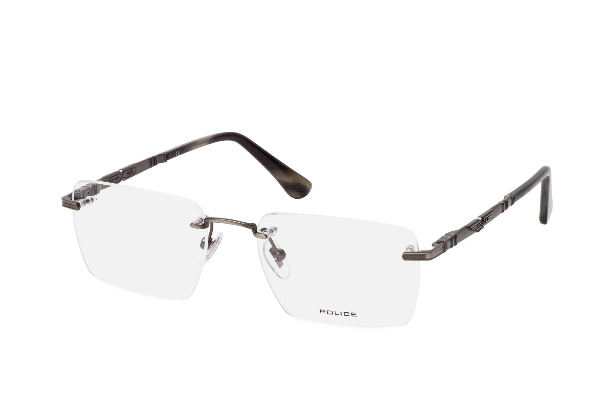 Police VPLF 84 0K20, Rechteckige Brille Herren. Farbe: Silber, Größe: Medium, Rahmentyp: FRAMELESS, Brillenbreite: 135mm, Glashöhe: 39mm, Material: Metall. Stegbreite: 18mm. Glasfarbe: . Glasmaterial: Metall/Metall.Hersteller: De Rigo Vision S.p.A. Style: