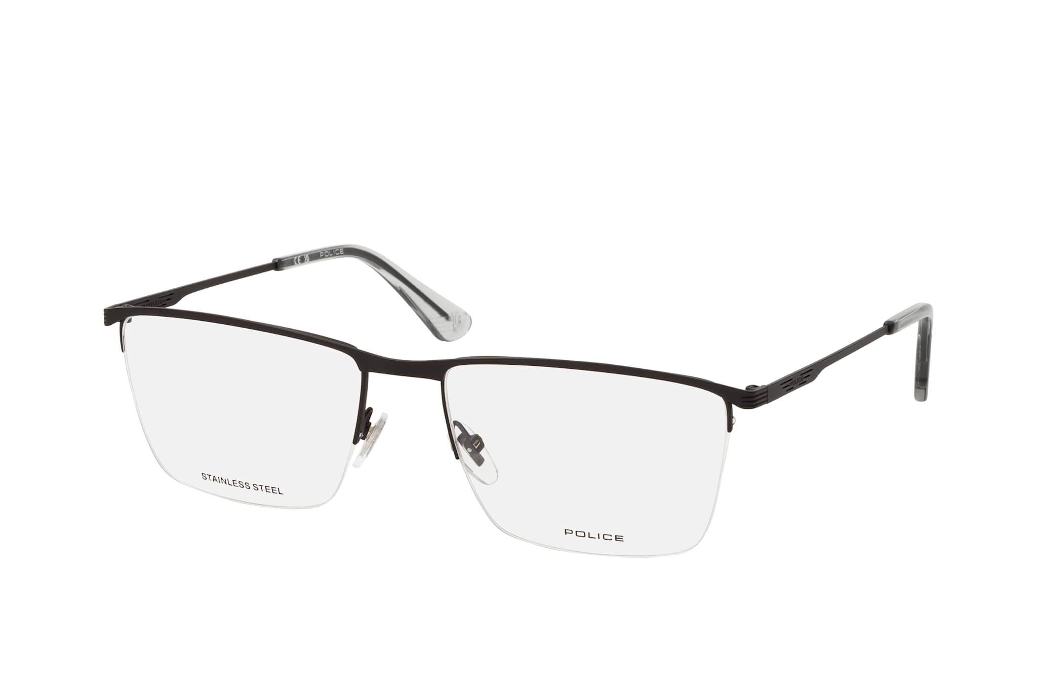 Police VPLG 75 0531, Rechteckige Brille Herren. Farbe: Schwarz, Größe: Medium, Rahmentyp: HALFFRAME, Brillenbreite: 140mm, Glashöhe: 40mm, Material: Metall. Stegbreite: 18mm. Glasfarbe: . Glasmaterial: Metall/Metall.Hersteller: De Rigo Vision S.p.A. Style: