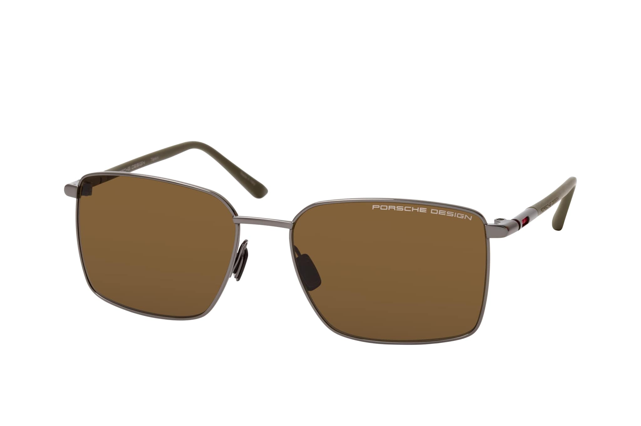 Porsche Design P 8973 C629, Quadratische Sonnenbrille Herren. Farbe: Grau, Größe: Medium, Rahmentyp: FULLFRAME, Brillenbreite: 140mm, Glashöhe: 44mm, Material: Titan/Kunststoff. Stegbreite: 17mm. Glasfarbe: Braun. Mit UV400-Filter. Hersteller: De Rigo Vision S.p.A. Style:
