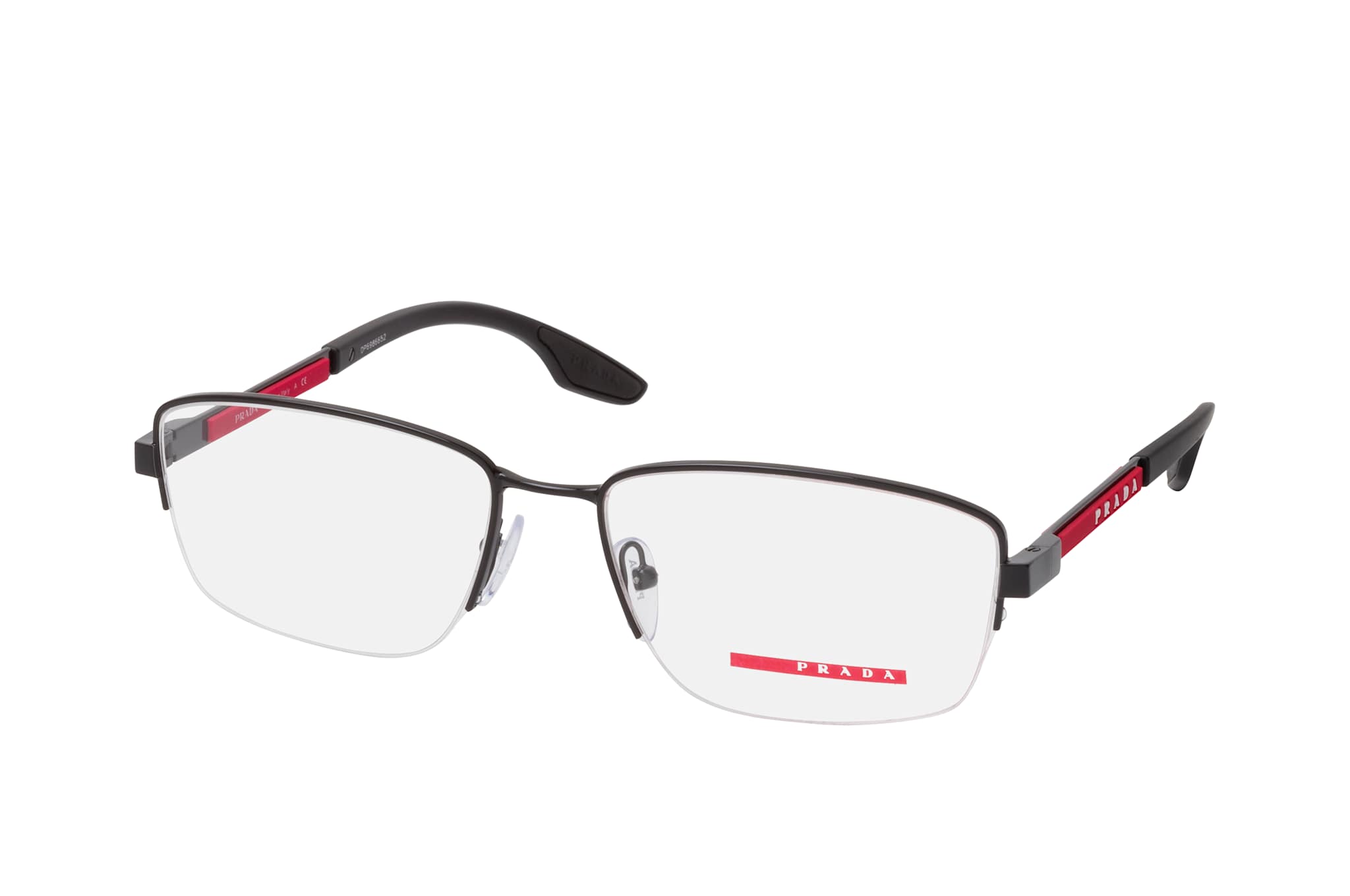 Prada Linea Rossa PS 51OV 1AB1O1, Rechteckige Brille Herren. Farbe: Schwarz, Größe: Medium, Rahmentyp: HALFFRAME, Brillenbreite: 137mm, Glashöhe: 37mm, Material: Metall. Stegbreite: 17mm. Glasfarbe: . Glasmaterial: Metall/Metall.Hersteller: Luxottica Group S.p.A. Style: CLASSIC
