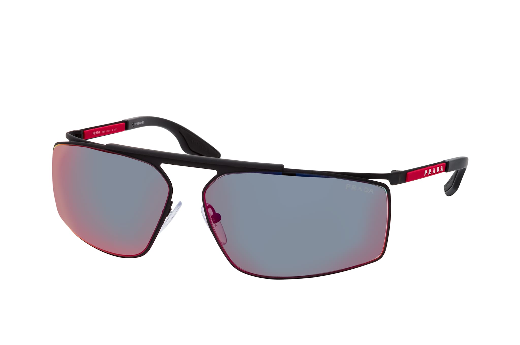 Prada Linea Rossa PS 51WS DG008F, Rechteckige Sonnenbrille Herren. Farbe: Schwarz, Größe: Medium, Rahmentyp: FULLFRAME, Brillenbreite: 134mm, Glashöhe: 42mm, Material: Metall. Stegbreite: 14mm. Glasfarbe: Grau. Mit UV400-Filter. Hersteller: Luxottica Group S.p.A. Style: SPORTIVE