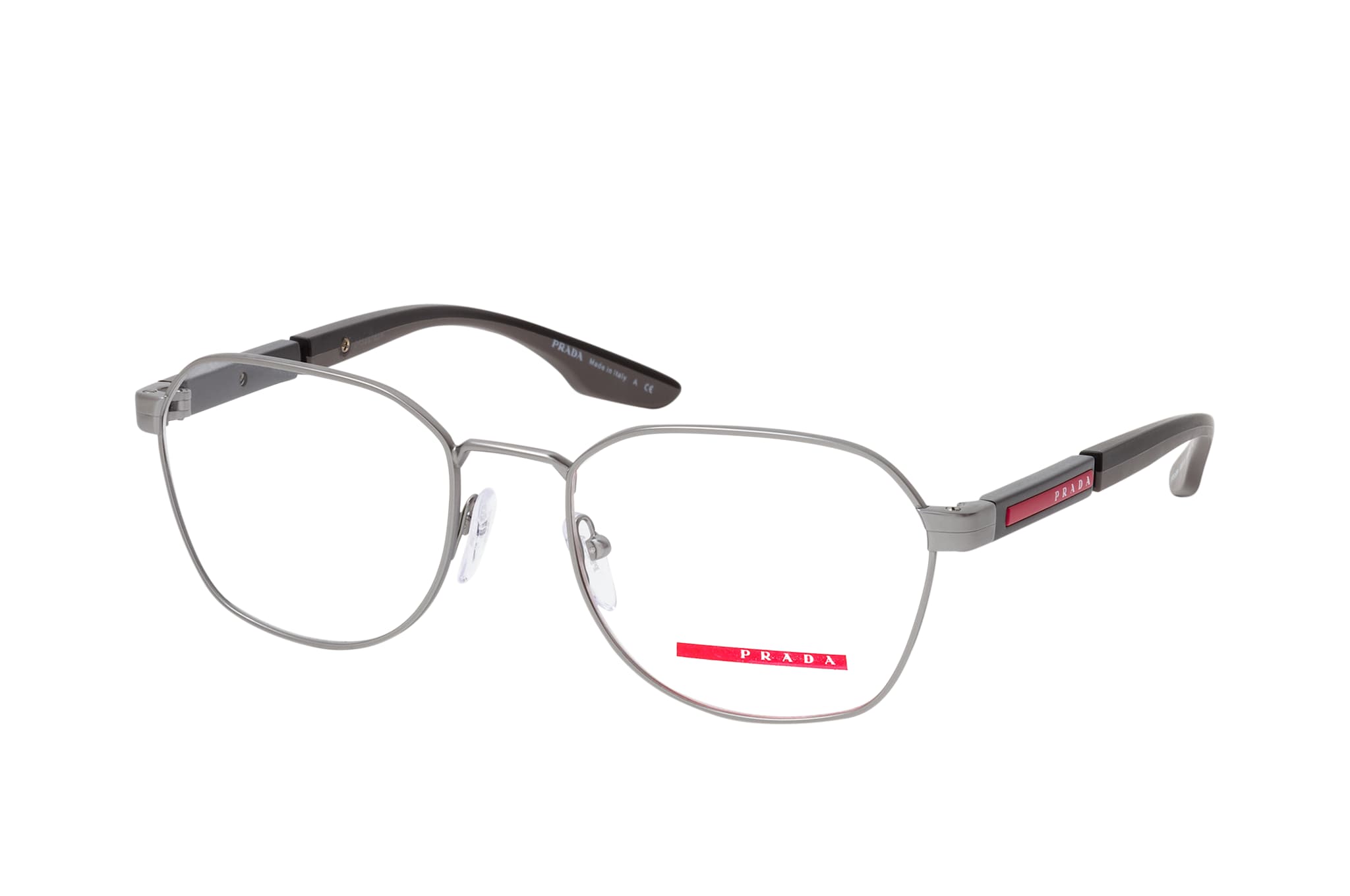 Prada Linea Rossa PS 53NV 7CQ1O1, Runde Brille Herren. Farbe: Grau, Größe: Medium, Rahmentyp: FULLFRAME, Brillenbreite: 134mm, Glashöhe: 43mm, Material: Metall. Stegbreite: 19mm. Glasfarbe: . Glasmaterial: Metall/Metall.Hersteller: Luxottica Group S.p.A. Style: CLASSIC