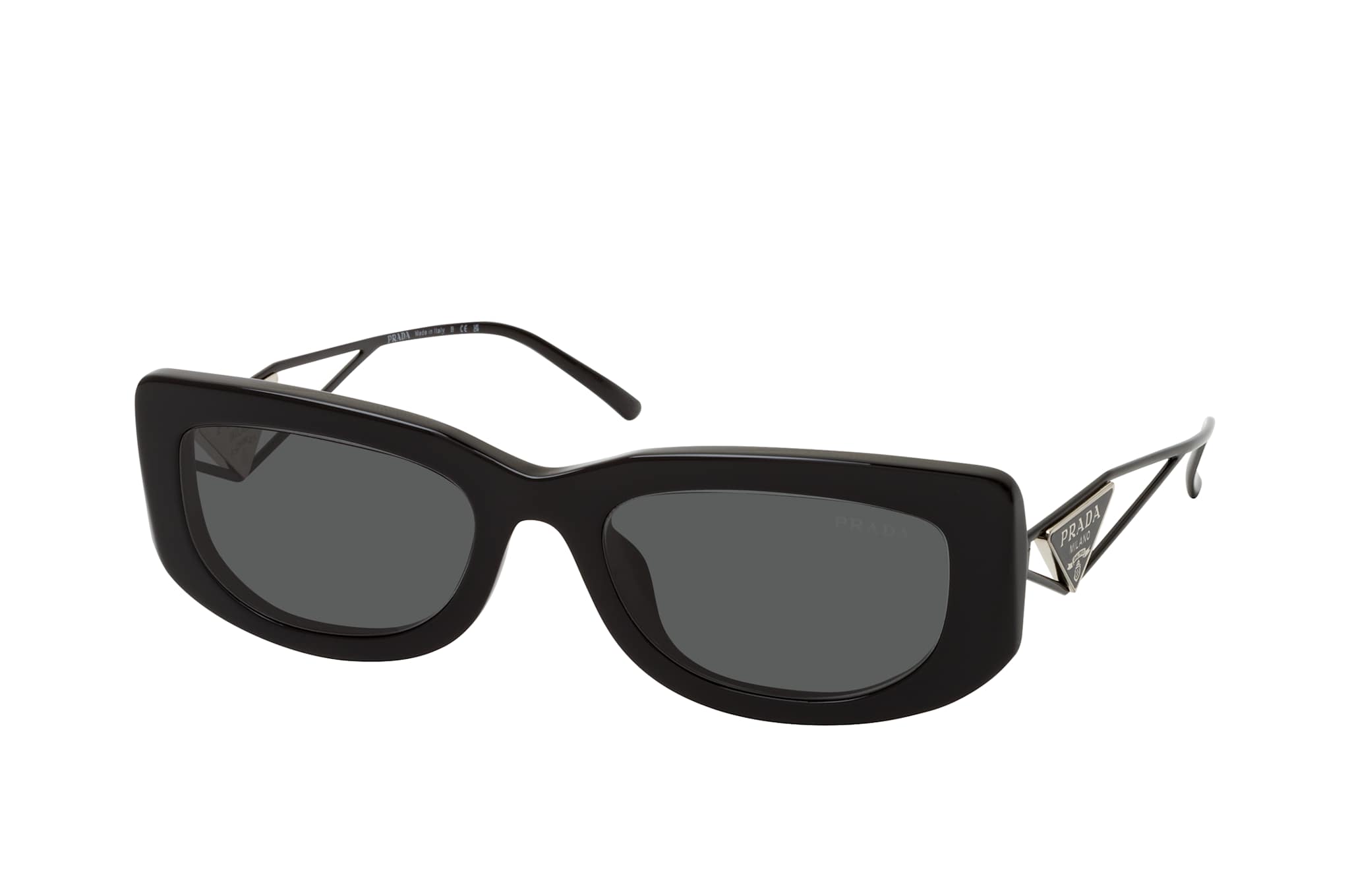 Prada PR 14YS 1AB5S0, Runde Sonnenbrille Damen. Farbe: Schwarz, Größe: Medium, Rahmentyp: FULLFRAME, Brillenbreite: 139mm, Glashöhe: 32mm, Material: Kunststoff/Metall. Stegbreite: 19mm. Glasfarbe: Grau. Mit UV400-Filter. Hersteller: Luxottica Group S.p.A. Style: