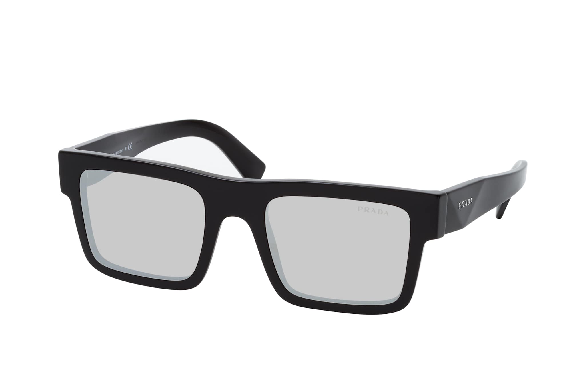 Prada PR 19WS 1AB2B0, Quadratische Sonnenbrille Herren. Farbe: Schwarz, Größe: Medium, Rahmentyp: FULLFRAME, Brillenbreite: 142mm, Glashöhe: 40mm, Material: Kunststoff. Stegbreite: 21mm. Glasfarbe: Grau. Mit UV400-Filter. Hersteller: Luxottica Group S.p.A. Style: MODERN