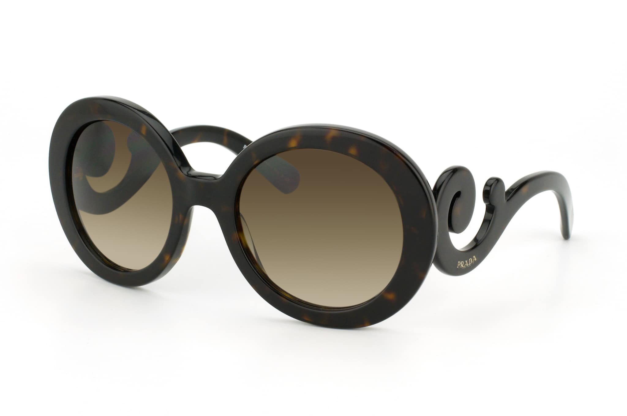 Prada PR 27NS 2AU6S1, Runde Sonnenbrille Damen. Farbe: Havana, Größe: Medium, Rahmentyp: FULLFRAME, Brillenbreite: 145mm, Glashöhe: 52mm, Material: Kunststoff. Stegbreite: 22mm. Glasfarbe: Braun. Mit UV400-Filter. Hersteller: Luxottica Group S.p.A. Style: MODERN