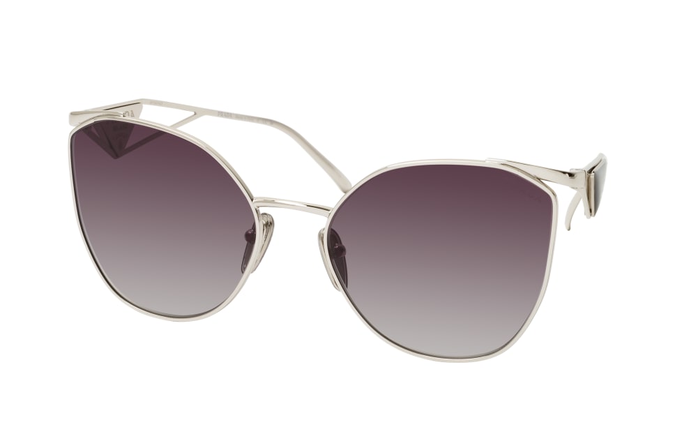 Prada PR 50ZS 1BC09S, Cat Eye Sonnenbrille Damen. Farbe: Silber, Größe: Medium, Rahmentyp: FULLFRAME, Brillenbreite: 142mm, Glashöhe: 52mm, Material: Metall. Stegbreite: 19mm. Glasfarbe: Grau. Mit UV400-Filter. Hersteller: Luxottica Fashion Brillen Vertriebs GmbH. Style: