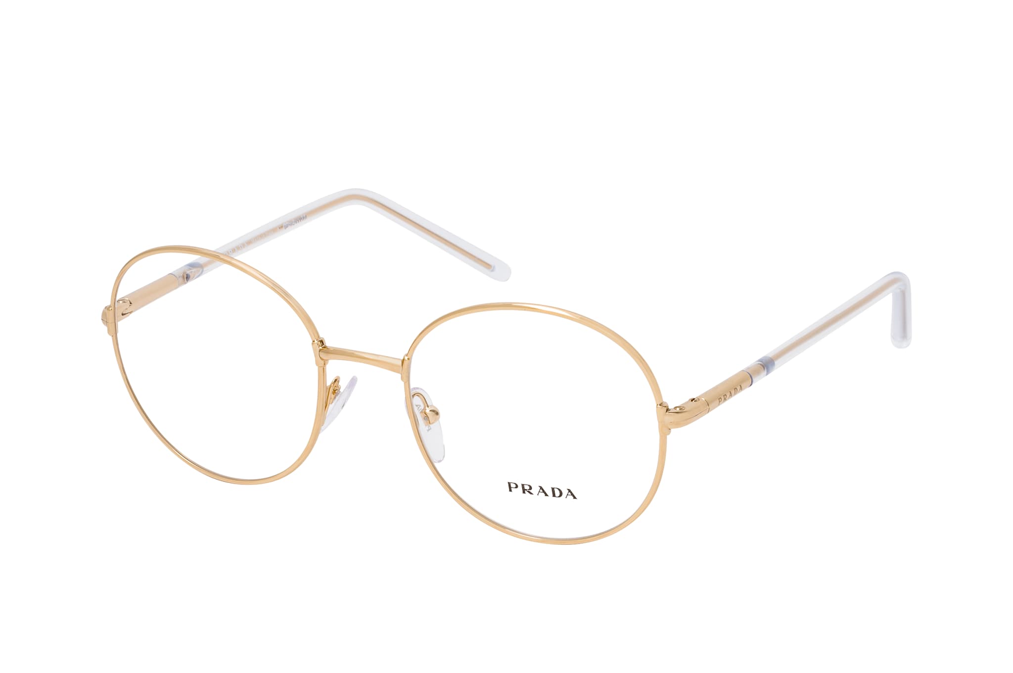 Prada PR 55WV 5AK1O1, Runde Brille Damen. Farbe: Goldfarben, Größe: Small, Rahmentyp: FULLFRAME, Brillenbreite: 128mm, Glashöhe: 48mm, Material: Metall. Stegbreite: 19mm. Glasfarbe: . Glasmaterial: Metall/Metall.Hersteller: Luxottica Group S.p.A. Style: EXTRAVAGANT