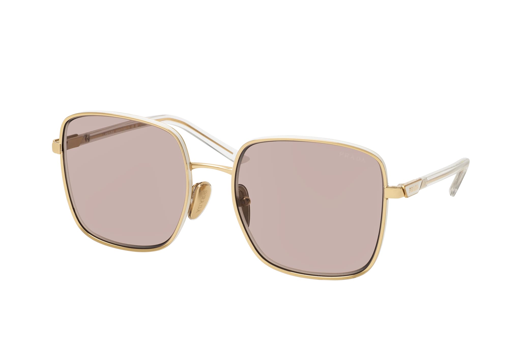 Prada PR 55YS ZVN06I, Quadratische Sonnenbrille Damen. Farbe: Goldfarben, Größe: Medium, Rahmentyp: FULLFRAME, Brillenbreite: 143mm, Glashöhe: 53mm, Material: Metall. Stegbreite: 19mm. Glasfarbe: Violett. Mit UV400-Filter. Hersteller: Luxottica Group S.p.A. Style: