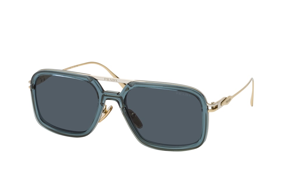 Prada PR 57ZS 19F09T, Aviator Sonnenbrille Herren. Farbe: Grau, Größe: Medium, Rahmentyp: FULLFRAME, Brillenbreite: 144mm, Glashöhe: 44mm, Material: Kunststoff/Metall. Stegbreite: 19mm. Glasfarbe: Grau. Mit UV400-Filter. Hersteller: Luxottica Fashion Brillen Vertriebs GmbH. Style: