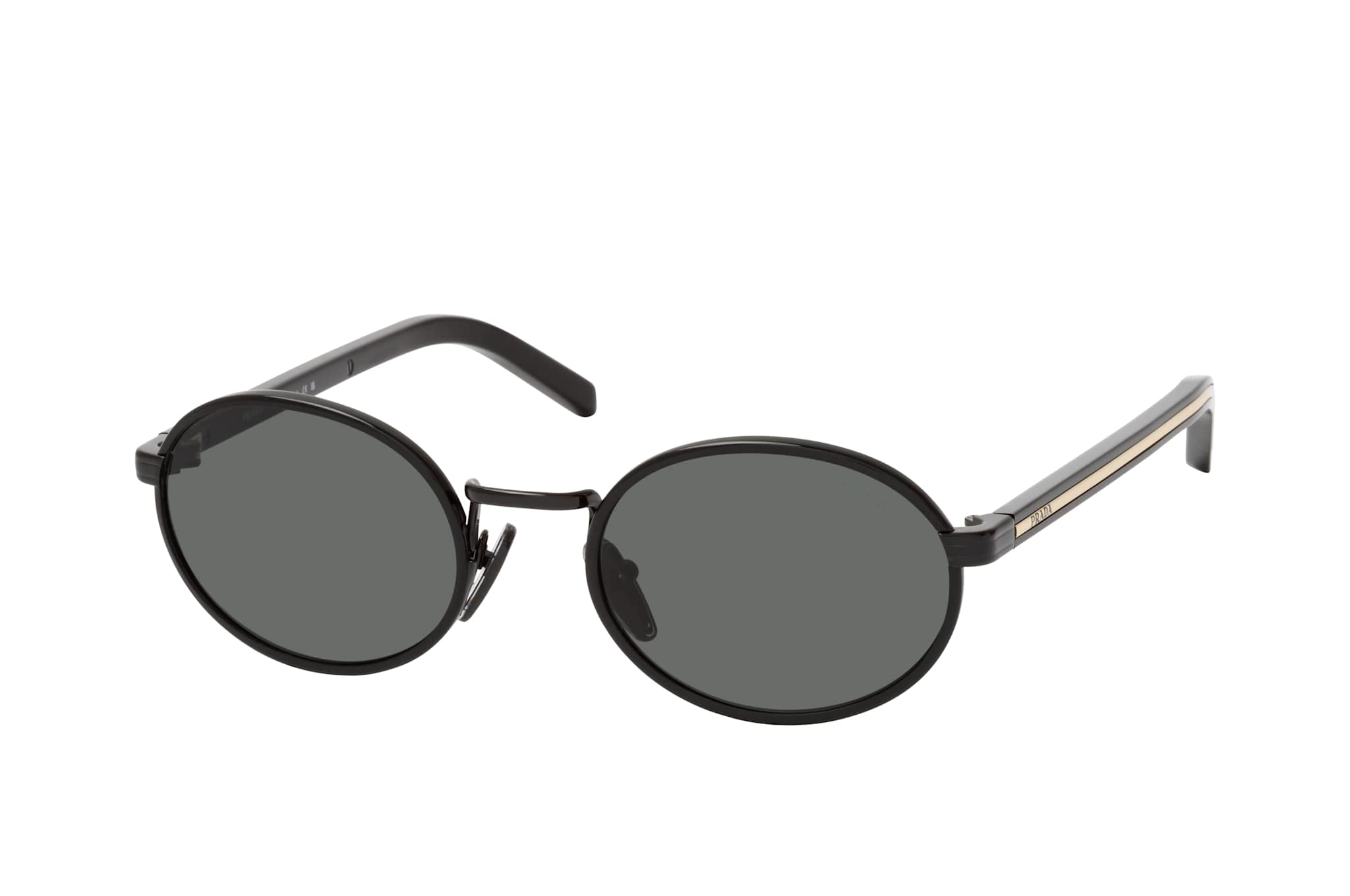 Prada PR B56S AAV08Z, Sonnenbrille Damen. Farbe: Schwarz, Größe: Medium, Rahmentyp: FULLFRAME, Brillenbreite: 133mm, Glashöhe: 41mm, Material: Metall/Kunststoff. Stegbreite: 20mm. Glasfarbe: Grau. Mit UV400-Filter. Hersteller: Luxottica Group S.p.A. Style: