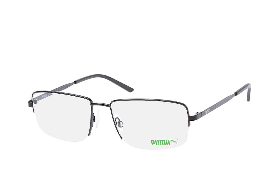 Puma PU 0215O 001, Quadratische Brille Herren. Farbe: Schwarz, Größe: Medium, Rahmentyp: HALFFRAME, Brillenbreite: 142mm, Glashöhe: 38mm, Material: Metall. Stegbreite: 17mm. Glasfarbe: . Glasmaterial: Metall/Metall.Hersteller: Kering Eyewear DACH GmbH. Style: CLASSIC