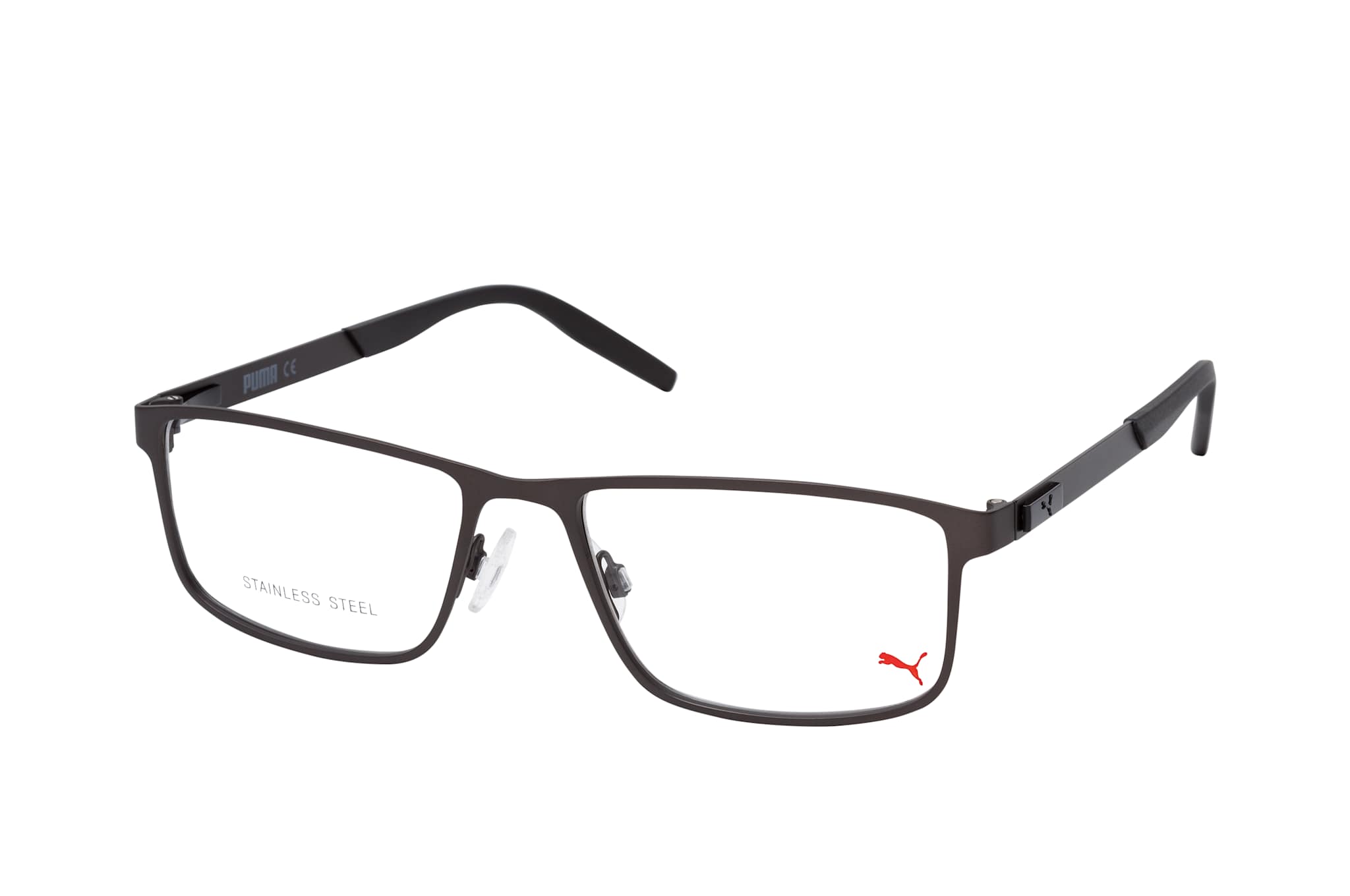 Puma PU 0256O 002, Rechteckige Brille Herren. Farbe: Silber, Größe: Medium, Rahmentyp: FULLFRAME, Brillenbreite: 143mm, Glashöhe: 36mm, Material: Metall. Stegbreite: 18mm. Glasfarbe: . Glasmaterial: Metall/Metall.Hersteller: Kering Eyewear DACH GmbH. Style: CLASSIC