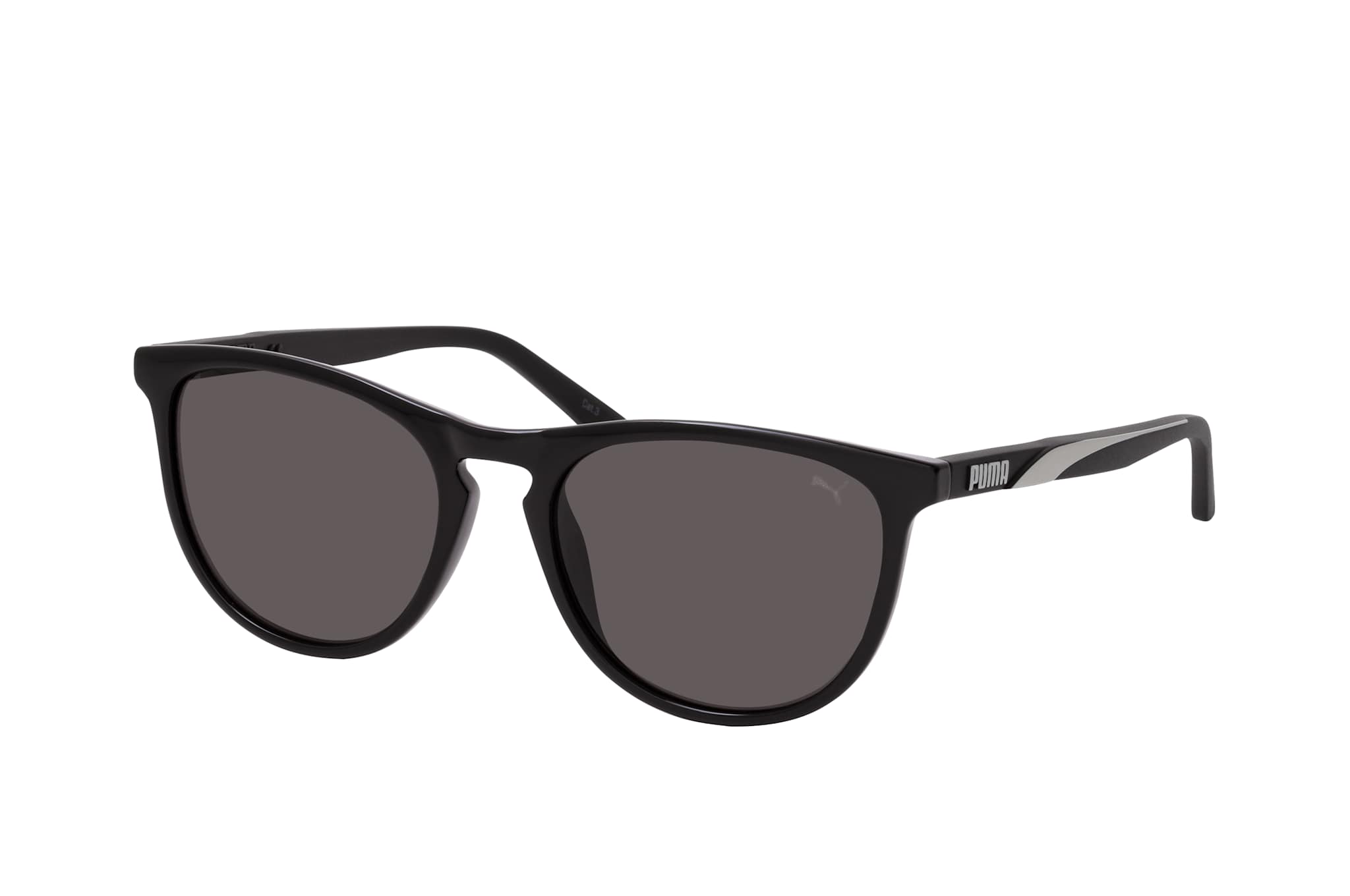 Puma PU 0345S 001, Runde Sonnenbrille Damen. Farbe: Schwarz, Größe: Medium, Rahmentyp: FULLFRAME, Brillenbreite: 140mm, Glashöhe: 44mm, Material: Kunststoff. Stegbreite: 18mm. Glasfarbe: Grau. Mit UV400-Filter. Hersteller: Kering Eyewear DACH GmbH. Style: MODERN