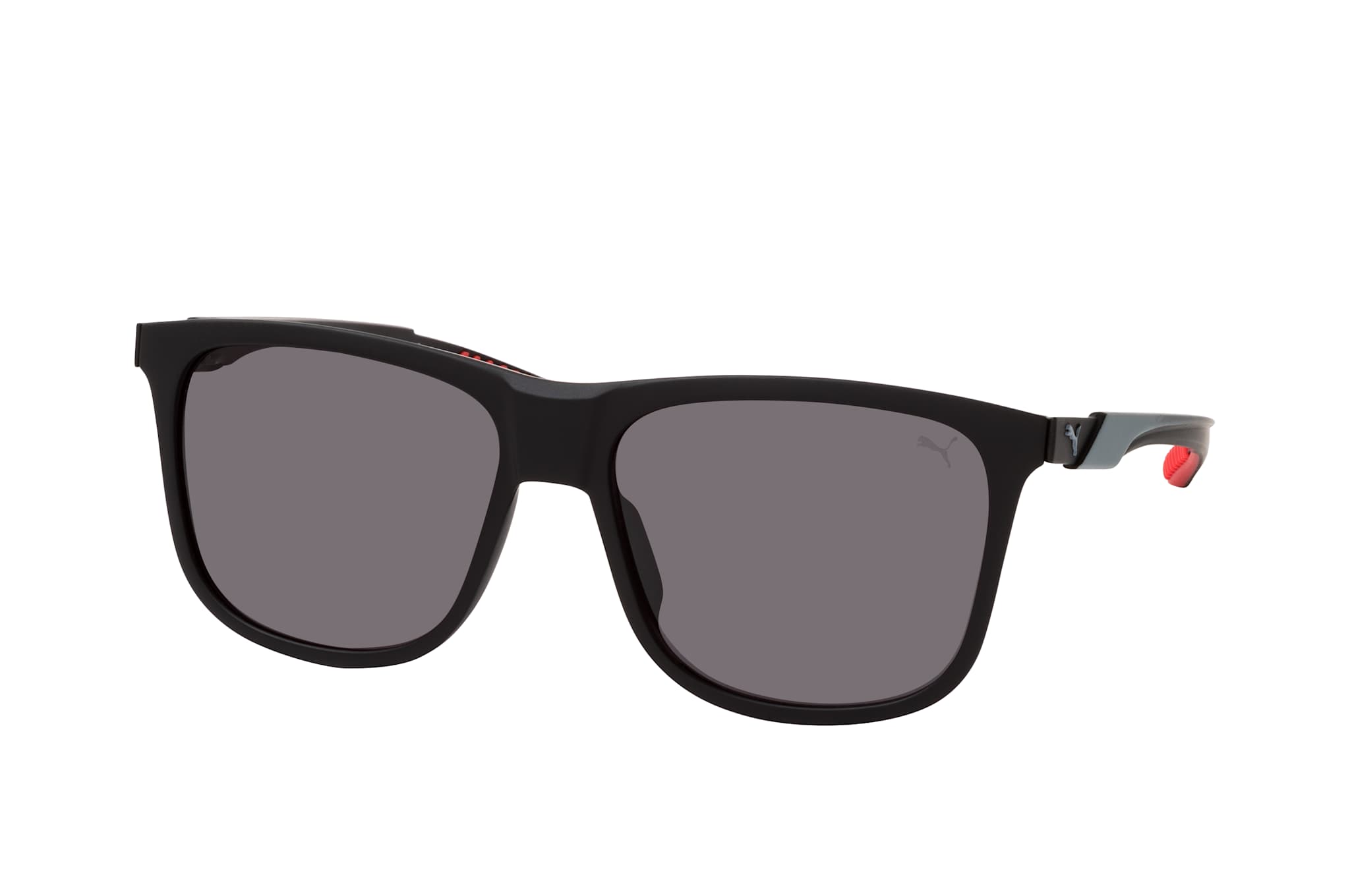 Puma PU 0360S 001, Quadratische Sonnenbrille Herren. Farbe: Schwarz, Größe: Medium, Rahmentyp: FULLFRAME, Brillenbreite: 145mm, Glashöhe: 47mm, Material: Kunststoff. Stegbreite: 16mm. Glasfarbe: Grau. Mit UV400-Filter. Hersteller: Kering Eyewear DACH GmbH. Style: