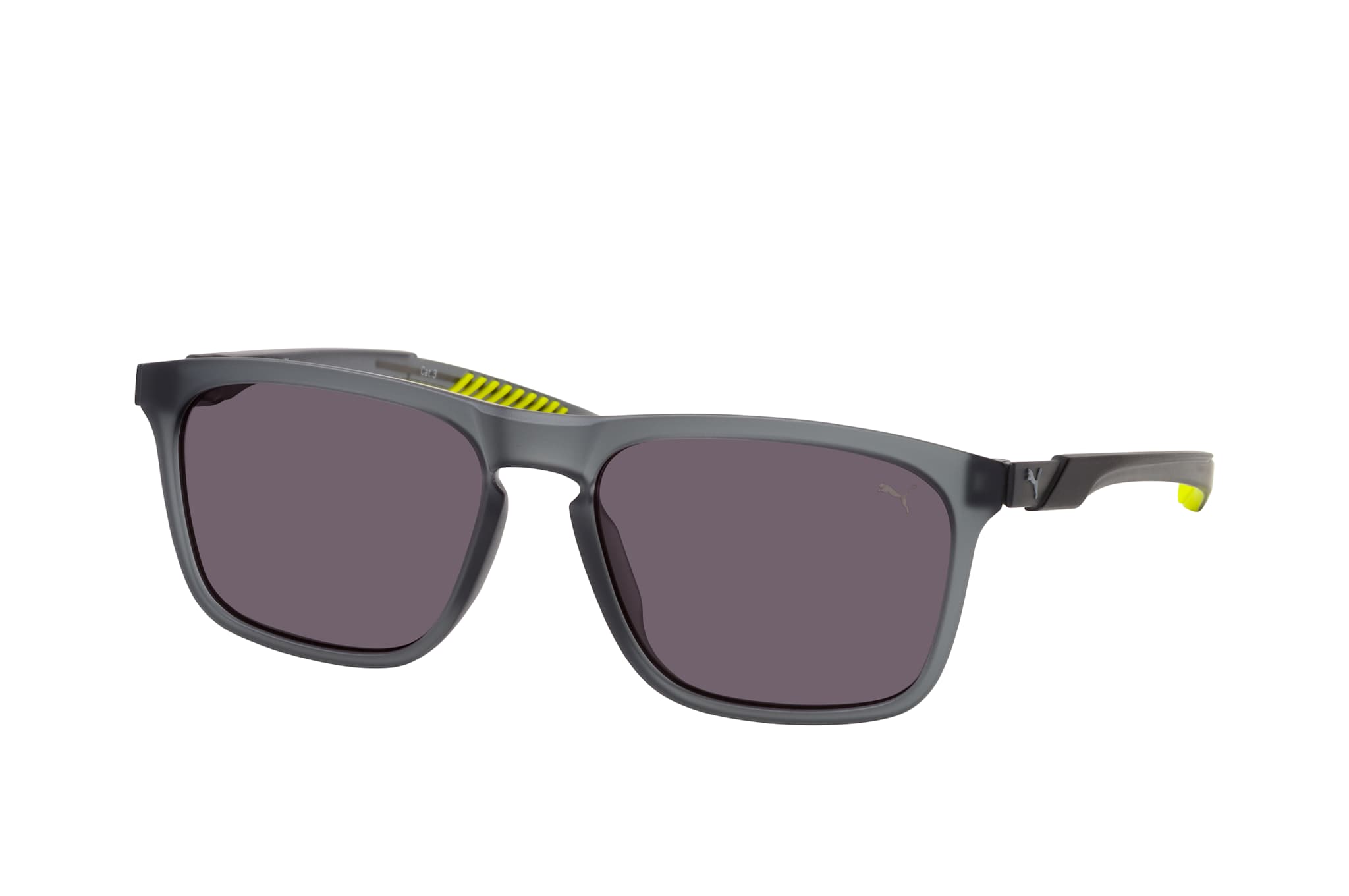 Puma PU 0376S 001, Quadratische Sonnenbrille Herren. Farbe: Grau, Größe: Medium, Rahmentyp: FULLFRAME, Brillenbreite: 149mm, Glashöhe: 43mm, Material: Kunststoff. Stegbreite: 17mm. Glasfarbe: Grau. Mit UV400-Filter. Hersteller: Kering Eyewear DACH GmbH. Style: