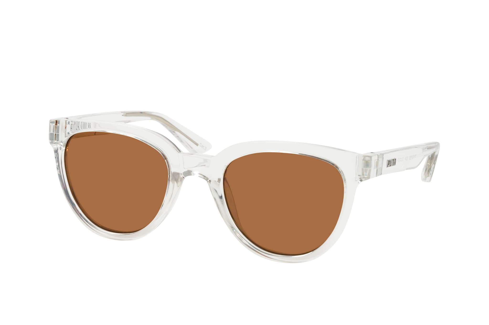 Puma PU0423S 004, Runde Sonnenbrille Damen. Farbe: Transparent, Größe: Medium, Rahmentyp: FULLFRAME, Brillenbreite: 140mm, Glashöhe: 44mm, Material: Kunststoff. Stegbreite: 22mm. Glasfarbe: Braun. Mit UV400-Filter. Hersteller: Kering Eyewear DACH GmbH. Style: