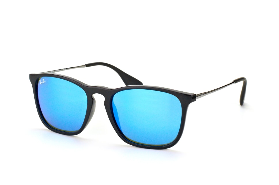 Ray-Ban Chris RB 4187 601/55, Quadratische Sonnenbrille Herren. Farbe: Schwarz, Größe: Medium, Rahmentyp: FULLFRAME, Brillenbreite: 140mm, Glashöhe: 43mm, Material: Kunststoff/Metall. Stegbreite: 18mm. Glasfarbe: Grün. Mit UV400-Filter. Hersteller: Luxottica Fashion Brillen Vertriebs GmbH. Style: CLASSIC