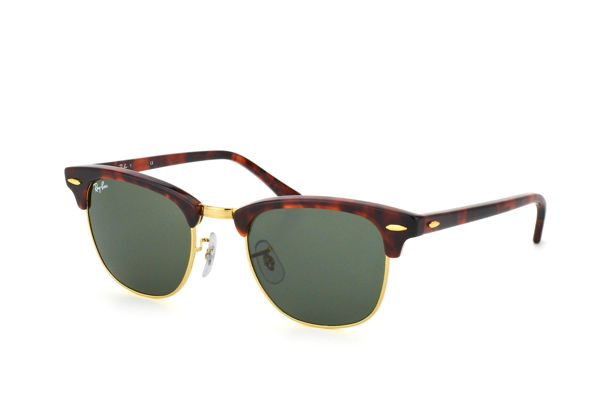 Ray-Ban Clubmaster RB 3016 W0366 small, Browline Sonnenbrille Unisex. Farbe: Havana, Größe: Small, Rahmentyp: FULLFRAME, Brillenbreite: 141mm, Glashöhe: 42mm, Material: Metall/Kunststoff. Stegbreite: 21mm. Glasfarbe: Grün. Mit UV400-Filter. Hersteller: Luxottica Group S.p.A. Style: MODERN