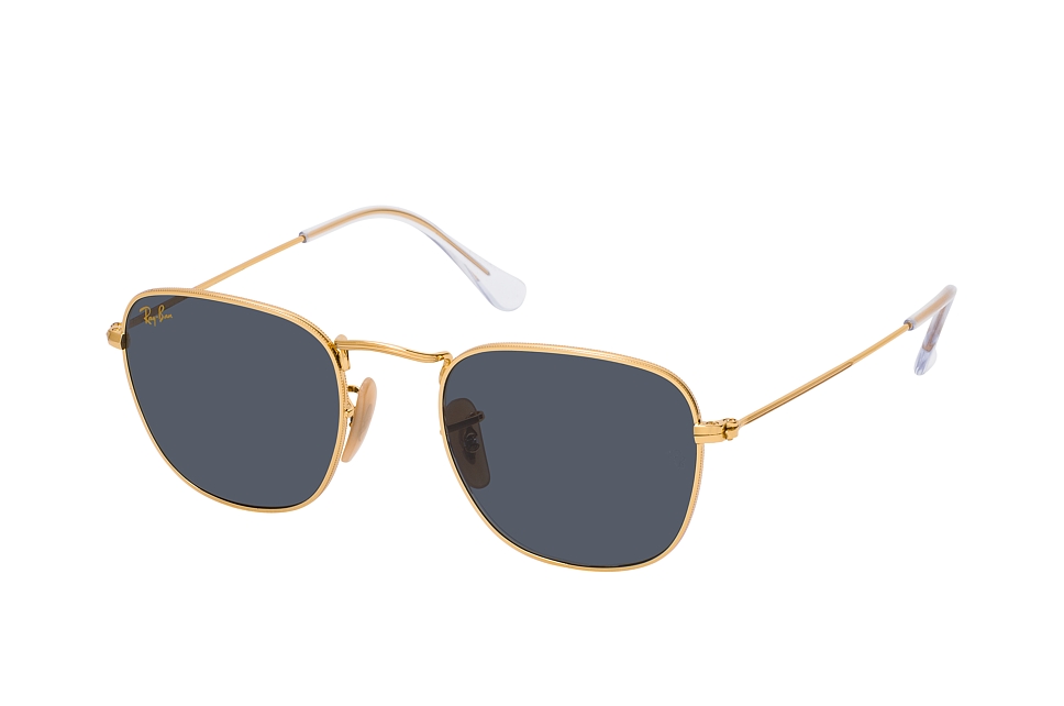 Ray-Ban Frank RB 3857 9196R5 small, Quadratische Sonnenbrille Unisex. Farbe: Goldfarben, Größe: Small, Rahmentyp: FULLFRAME, Brillenbreite: 124mm, Glashöhe: 42mm, Material: Metall. Stegbreite: 20mm. Glasfarbe: Blau. Mit UV400-Filter. Hersteller: Luxottica Fashion Brillen Vertriebs GmbH. Style: EXTRAVAGANT