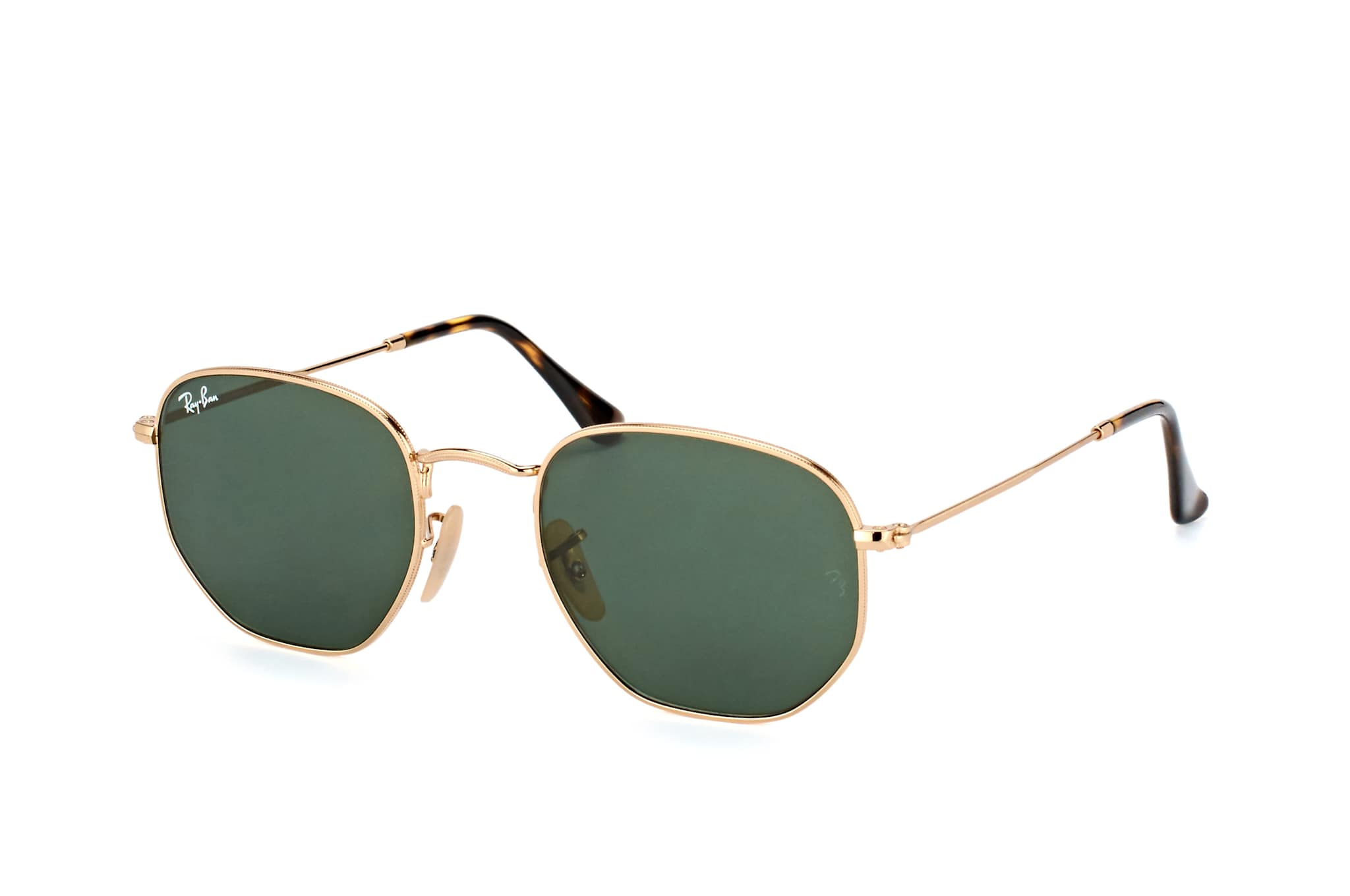 Ray-Ban Hexagonal RB 3548N 001, Runde Sonnenbrille Herren. Farbe: Goldfarben, Größe: Medium, Rahmentyp: FULLFRAME, Brillenbreite: 132mm, Glashöhe: 44mm, Material: Metall. Stegbreite: 21mm. Glasfarbe: Grün. Mit UV400-Filter. Hersteller: Luxottica Group S.p.A. Style: CLASSIC
