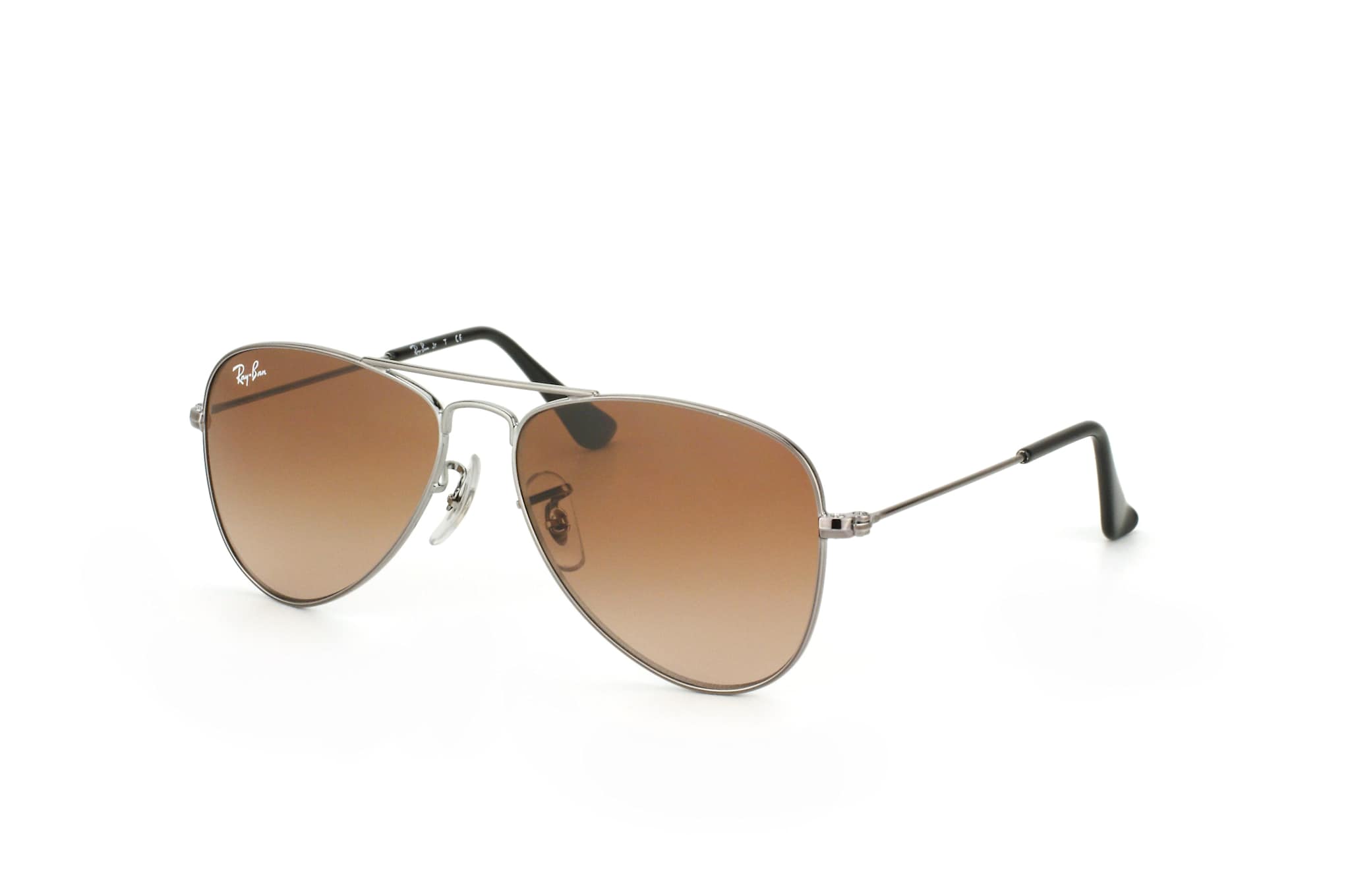 Ray-Ban Junior RJ 9506S 200/13, Aviator Sonnenbrille Unisex. Farbe: Grau, Größe: Medium, Rahmentyp: FULLFRAME, Brillenbreite: 123mm, Glashöhe: 42mm, Material: Metall. Stegbreite: 13mm. Glasfarbe: Braun. Mit UV400-Filter. Hersteller: Luxottica Group S.p.A. Style: MODERN