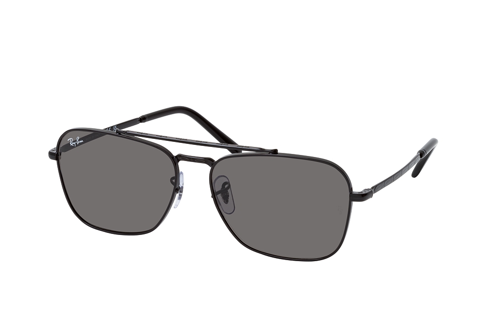 Ray-Ban New Caravan RB 3636 002/B1, Quadratische Sonnenbrille Unisex. Farbe: Schwarz, Größe: Medium, Rahmentyp: FULLFRAME, Brillenbreite: 140mm, Glashöhe: 44mm, Material: Metall. Stegbreite: 15mm. Glasfarbe: Grau. Mit UV400-Filter. Hersteller: Luxottica Fashion Brillen Vertriebs GmbH. Style: